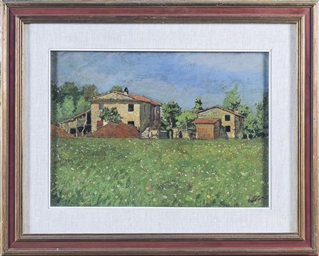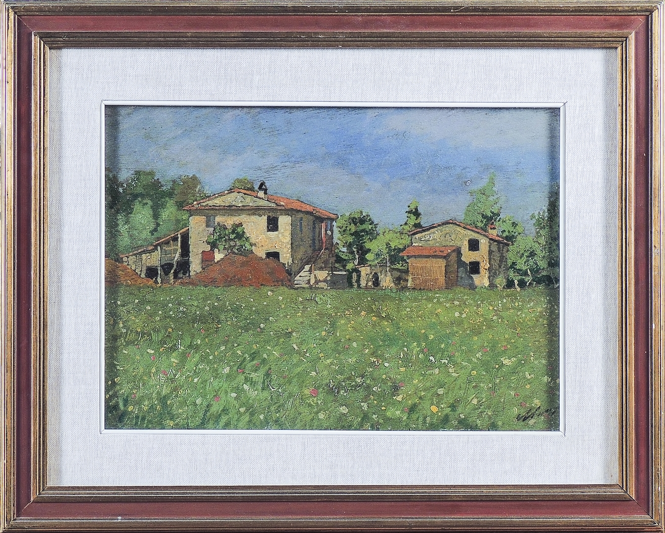 CARLO PASSIGLI (1881-1953) Veduta di casolare olio su tavoletta, firmato, in cornice cm 26x38