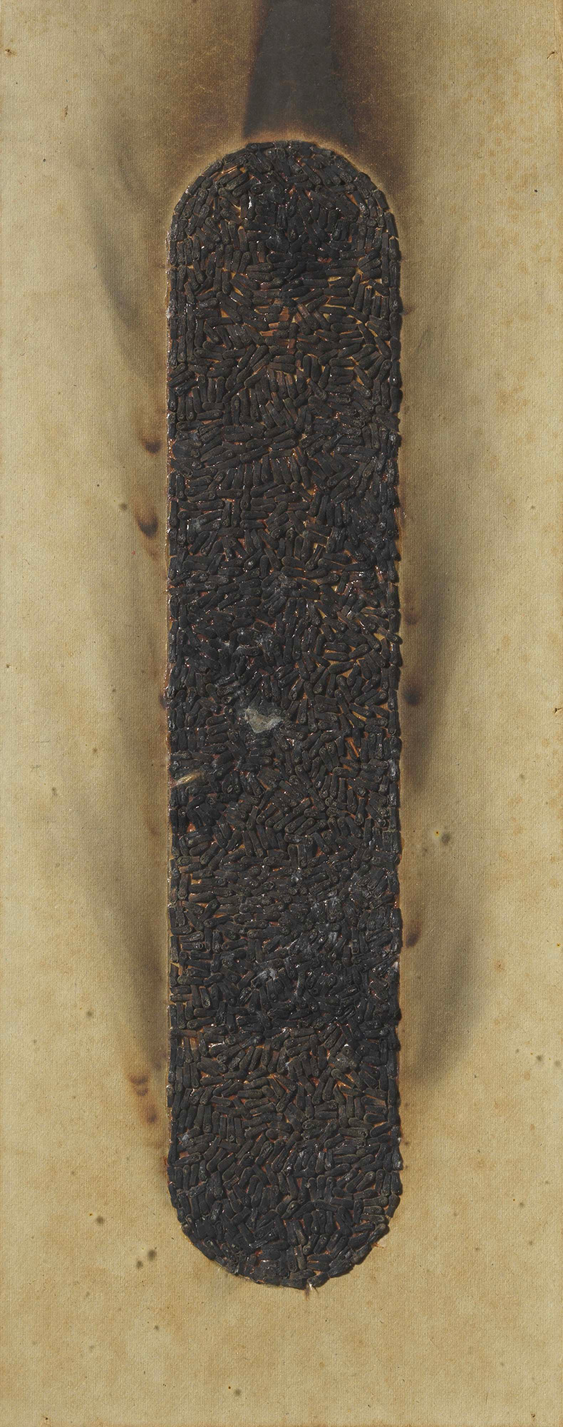 Fiammiferi bruciati su cartone, cm. 50 x 20