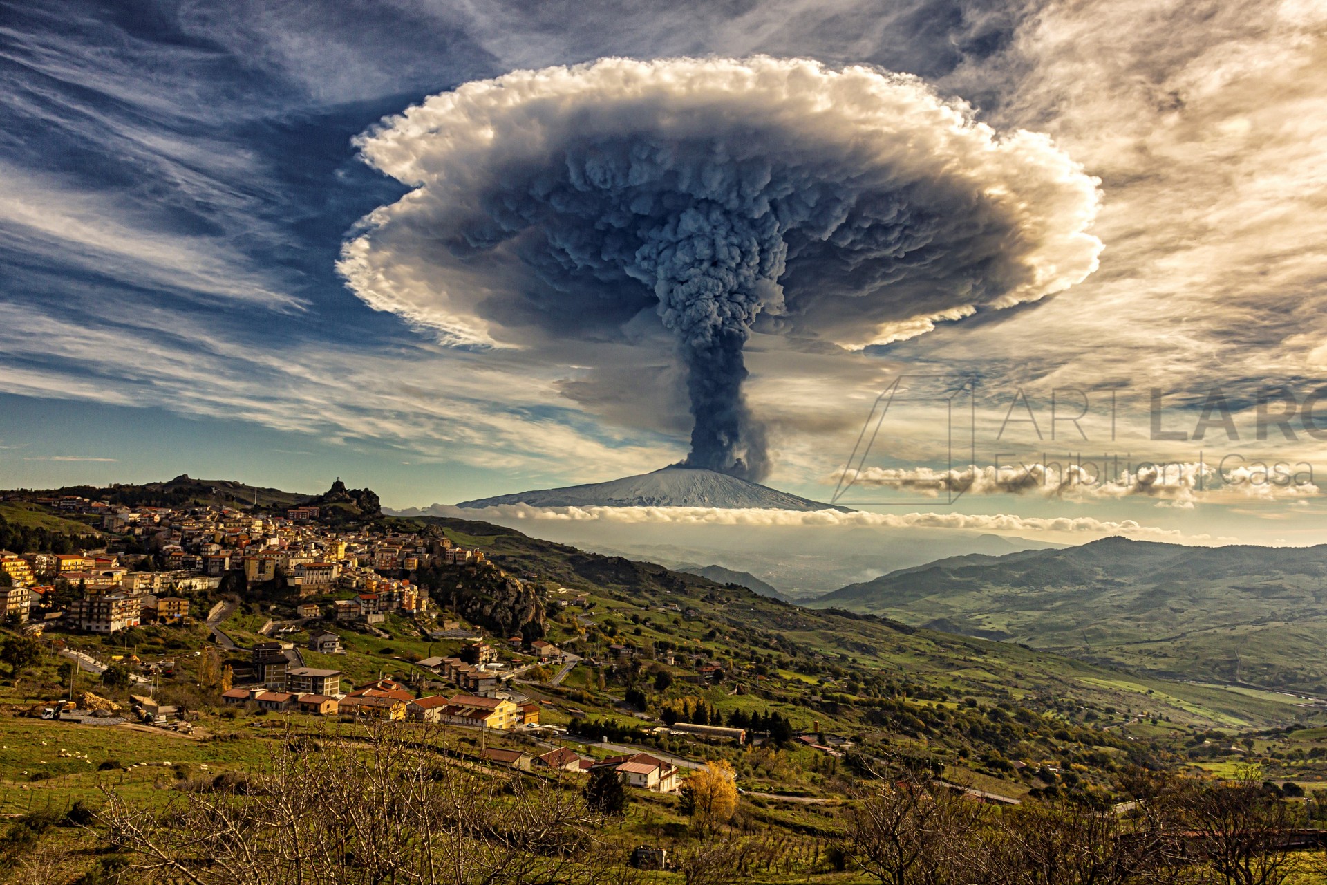 Eruzione esplosiva dell’Etna con nuvola simile ad una esplosione atomica.