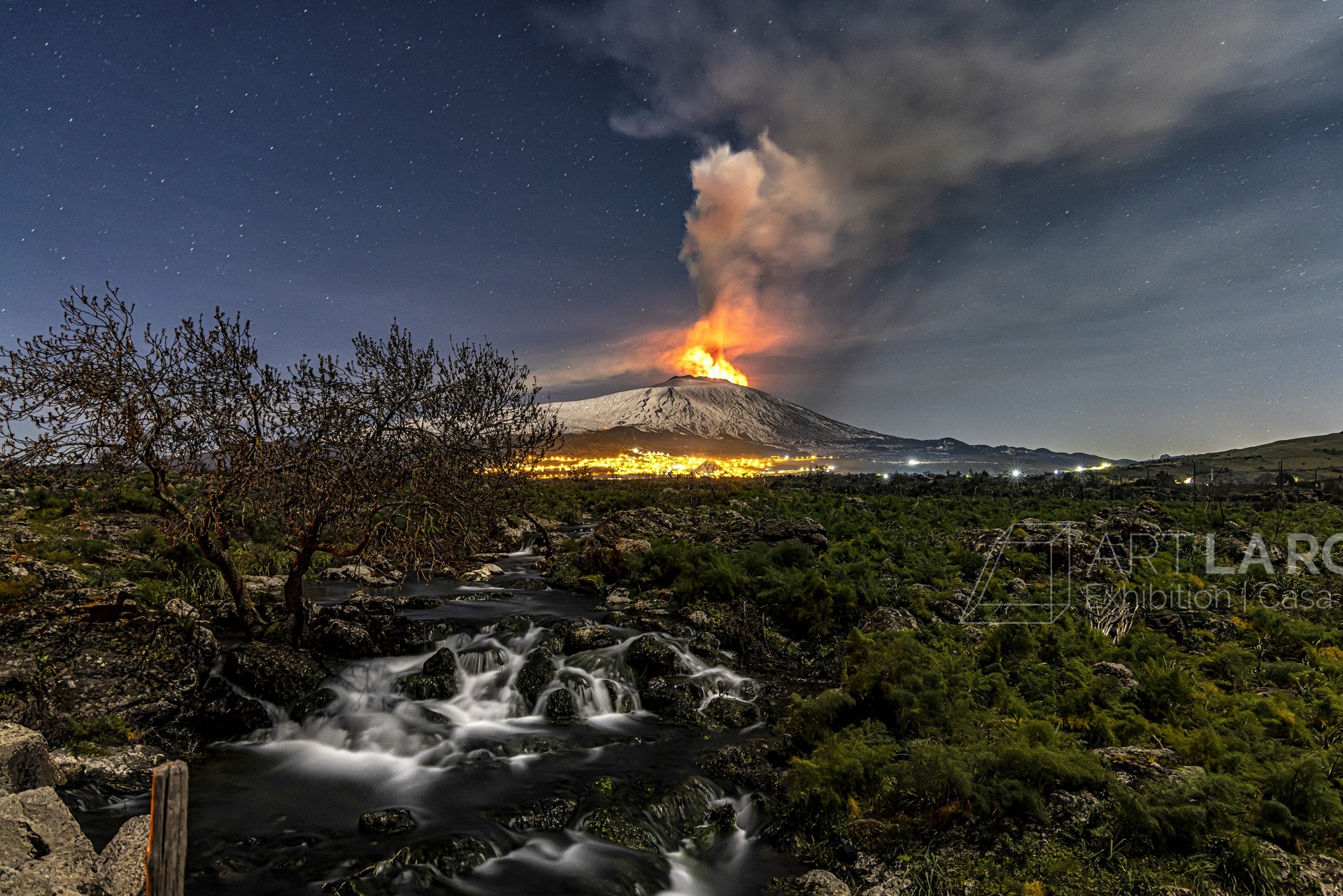 Eruzione notturna dell’Etna dalle favare di Maletto.