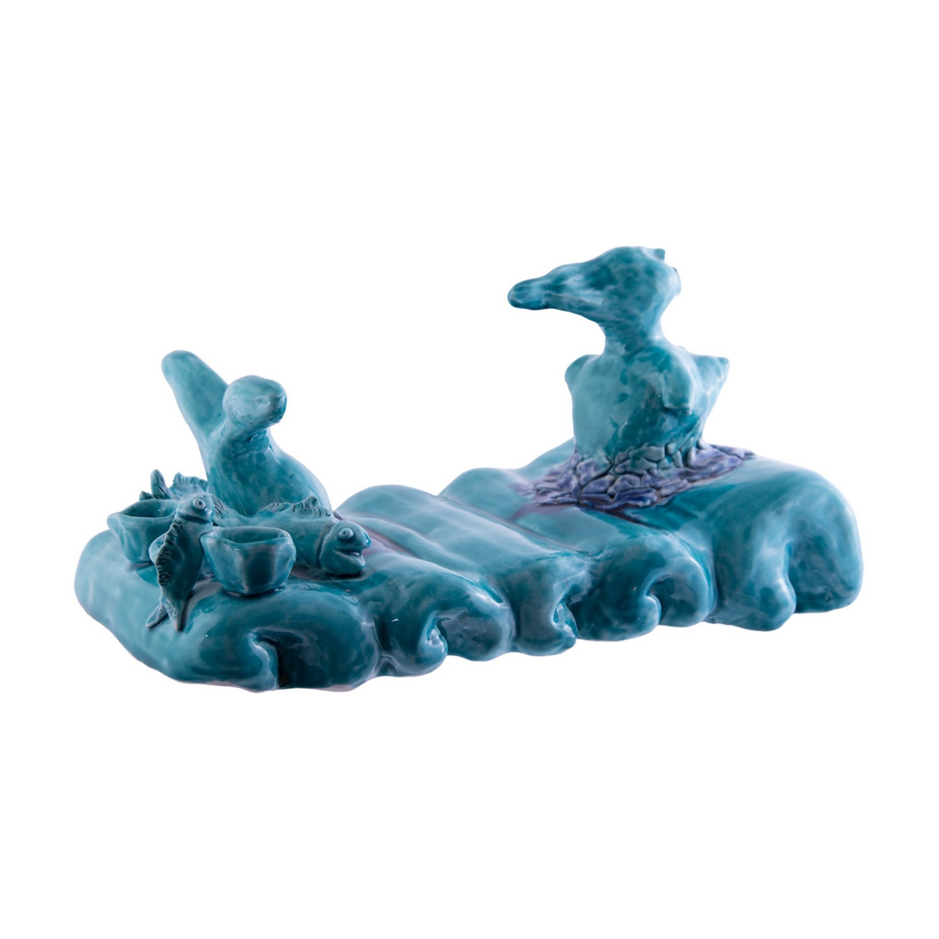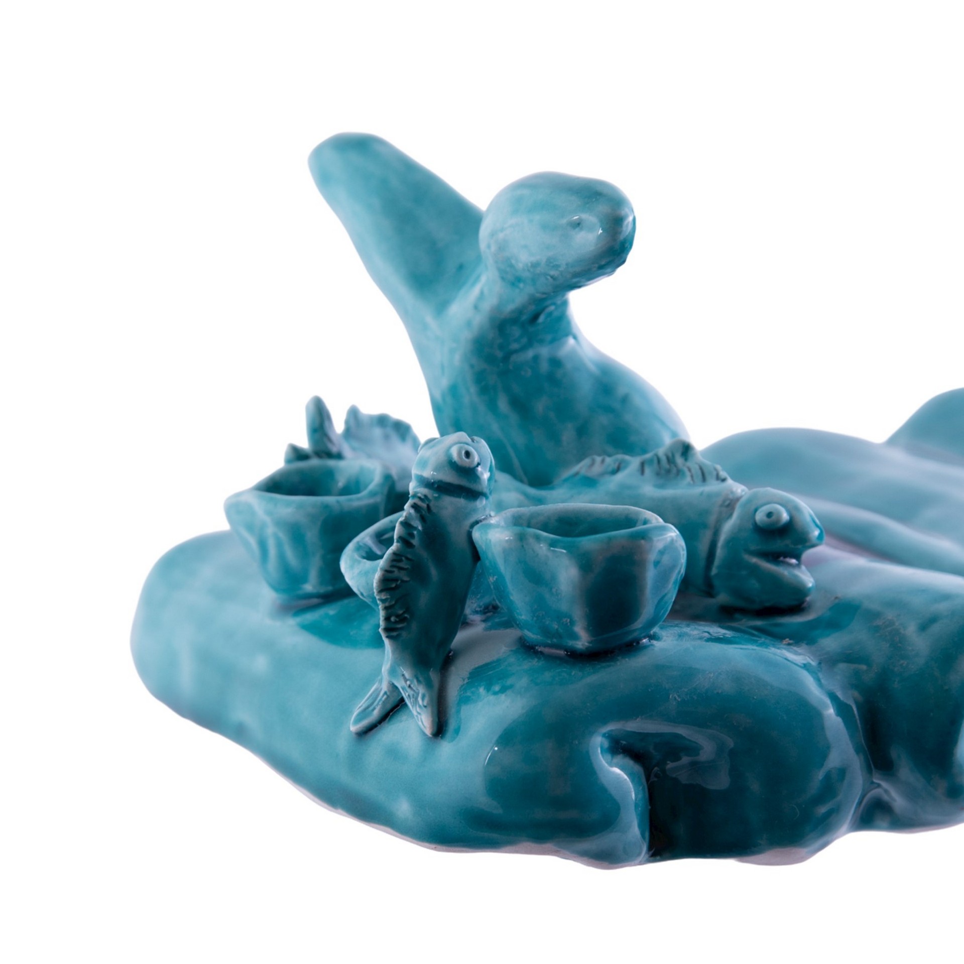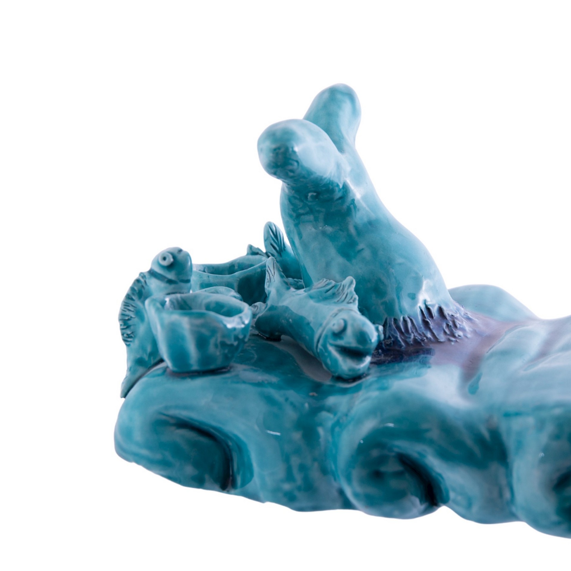 ceramica dipinto a mano e cera persa CGP-Cucinotta - Ciondolo in ceramica raffigurante testa di pupo siciliano ceramica dipinto a mano e cera persa Con cornice in argento.