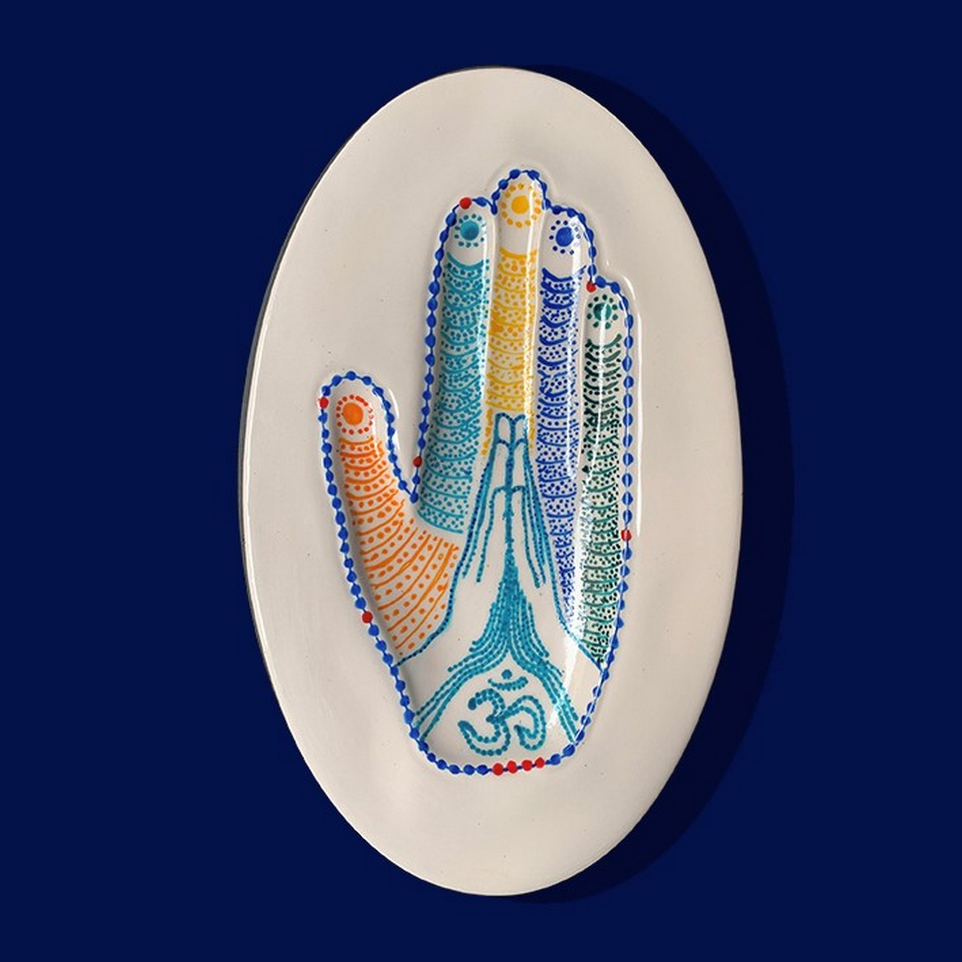 Ceramica dipinta a mano Luigi Camarilla - Mano Yoga OM, “Ex Voto contemporanei” h cm26x16x3; kg. 1 Ceramica dipinta a mano