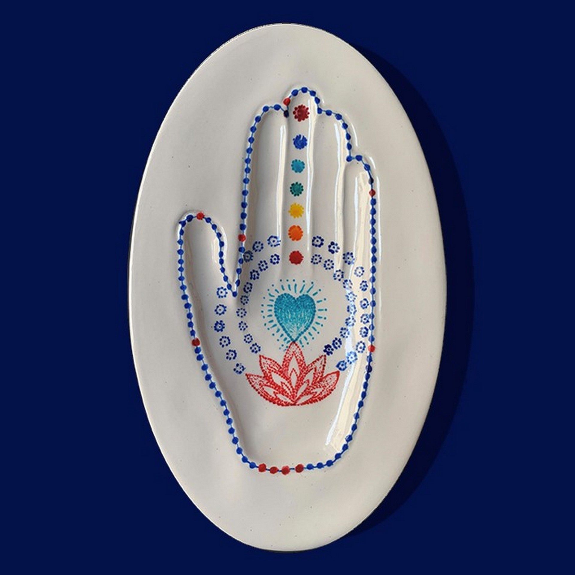 Ceramica dipinta a mano Luigi Camarilla - Mano Yoga fiore della purezza, “Ex Voto contemporanei” h cm26x16x3; kg. 1 Ceramica dipinta a mano