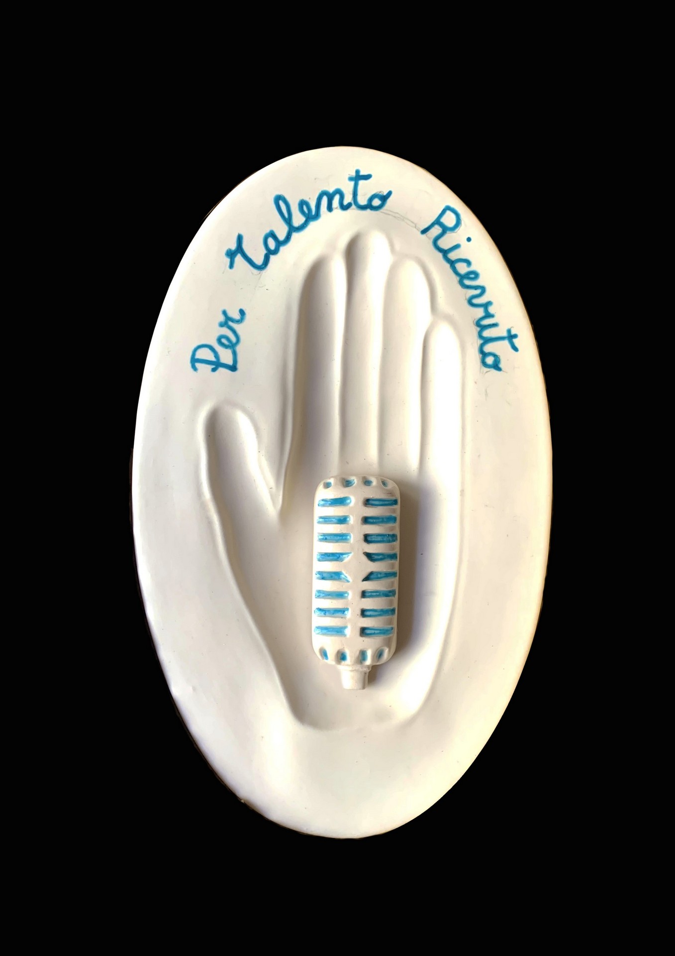 “Ex Voto contemporanei” sono opere ovali di ceramica bianca nel cui centro è impresso il palmo di una mano, pronta a “ricevere“. In quell’incavo viene poi posizionato un simbolo tridimensionale che rappresenta la moderna Grazia. Nella tradizione della devozione popolare cattolica, gli ex-voto testimoniano la gratitudine dei fedeli per un intervento divino salvifico: guarigioni e scampati pericoli di natura materiale.Questi Ex Voto d’autore propongono una concezione immateriale della Grazia Ricevuta: Per Talento Ricevuto, Per Sorte Ricevuta, Per Passione Ricevuta… sono alcuni esempi di una rivisitazione che nasce con l’intento di far transitare, dalla tradizione all’attualità, l’estetica di un’iconografia votiva e i suoi contenuti.Le “Mani Yoga“ sono gli ultimi esiti di una vocazione tesa a scandagliare tra le diverse fonti della Spiritualità e del Sacro. Le Mani Yoga presentano anche un piccolo foro per essere usate come Porta IncensoLe stesse parole dell’autore, in un’intervista, chiariscono come sono nate.“Un giorno maneggio una di quelle Mani, candida, di terra cotta smaltata, luminosa, intatta. Me la guardo come se quel palmo aperto fosse il campo in cui rappresentare il personale bisogno di equilibrio interiore e di Armonia con l’Universo che da qualche tempo mi portano al di là del mio interesse per il Mediterraneo, ad Oriente, all’universo dello Yoga, al senso della sua pratica, ai suoi simboli potenti. Mosso da quella suggestione intima, ho dipinto dentro il palmo di quella mano. Con tecnica di punti e linee ho tratteggiato la scena di mani giunte, Sillaba Madre, Chakra, decori, come fossero rilasciati lì da Hennè di un’India colorata. Mano OM, l’ho battezzata così, in omaggio alla vibrazione che connette l’universo interiore a quello cosmico. Occhio Spirituale e Loto della Purezza sono nati successivamente, come naturale conseguenza, per essere rappresentati in altre Mani.Grazie alla creta di Nostra madre Terra.