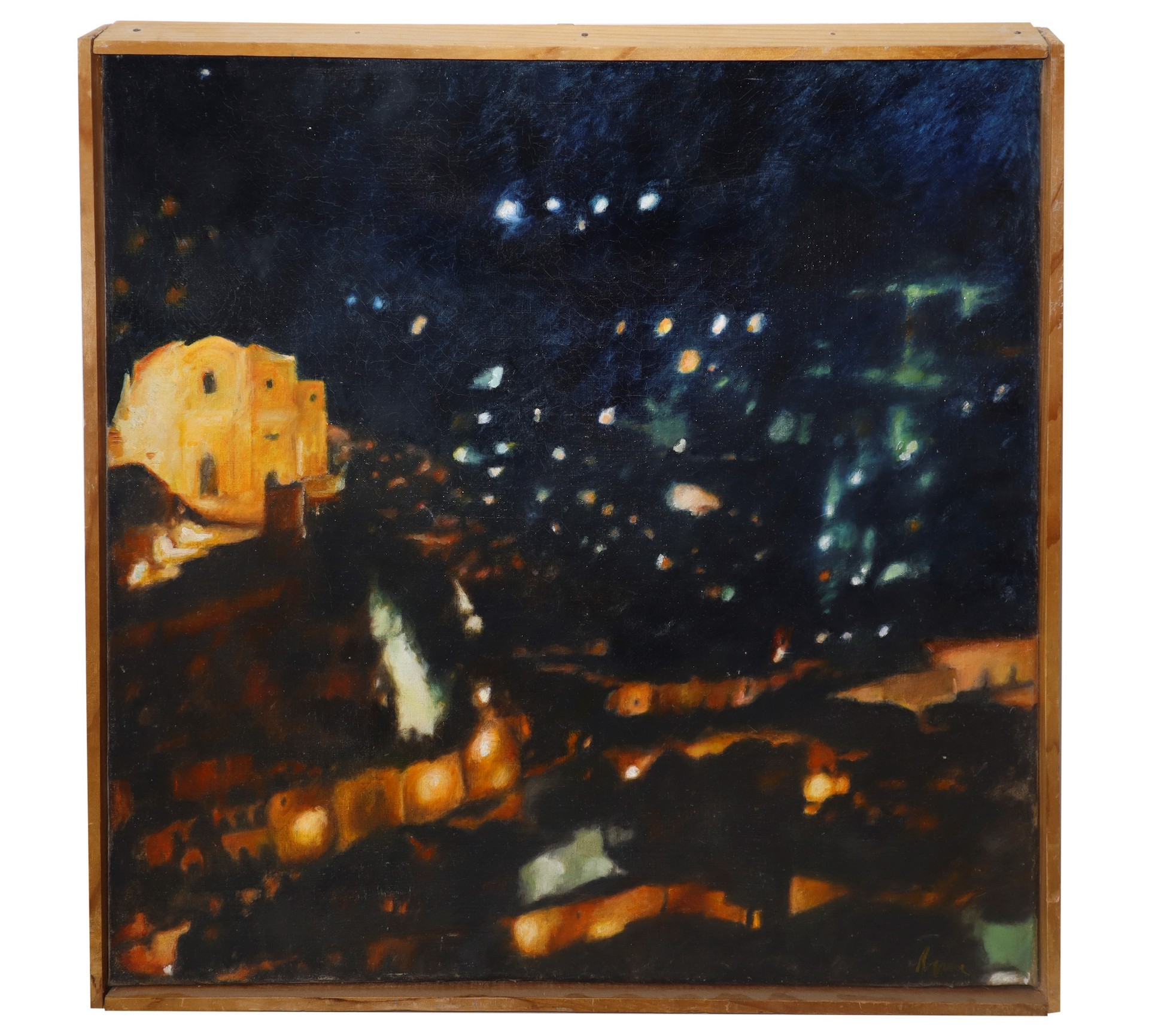 olio su lino Lucia Ragusa (Catania) - Notte su Scicli - vista da Modica cm 60 x cm 60 olio su lino