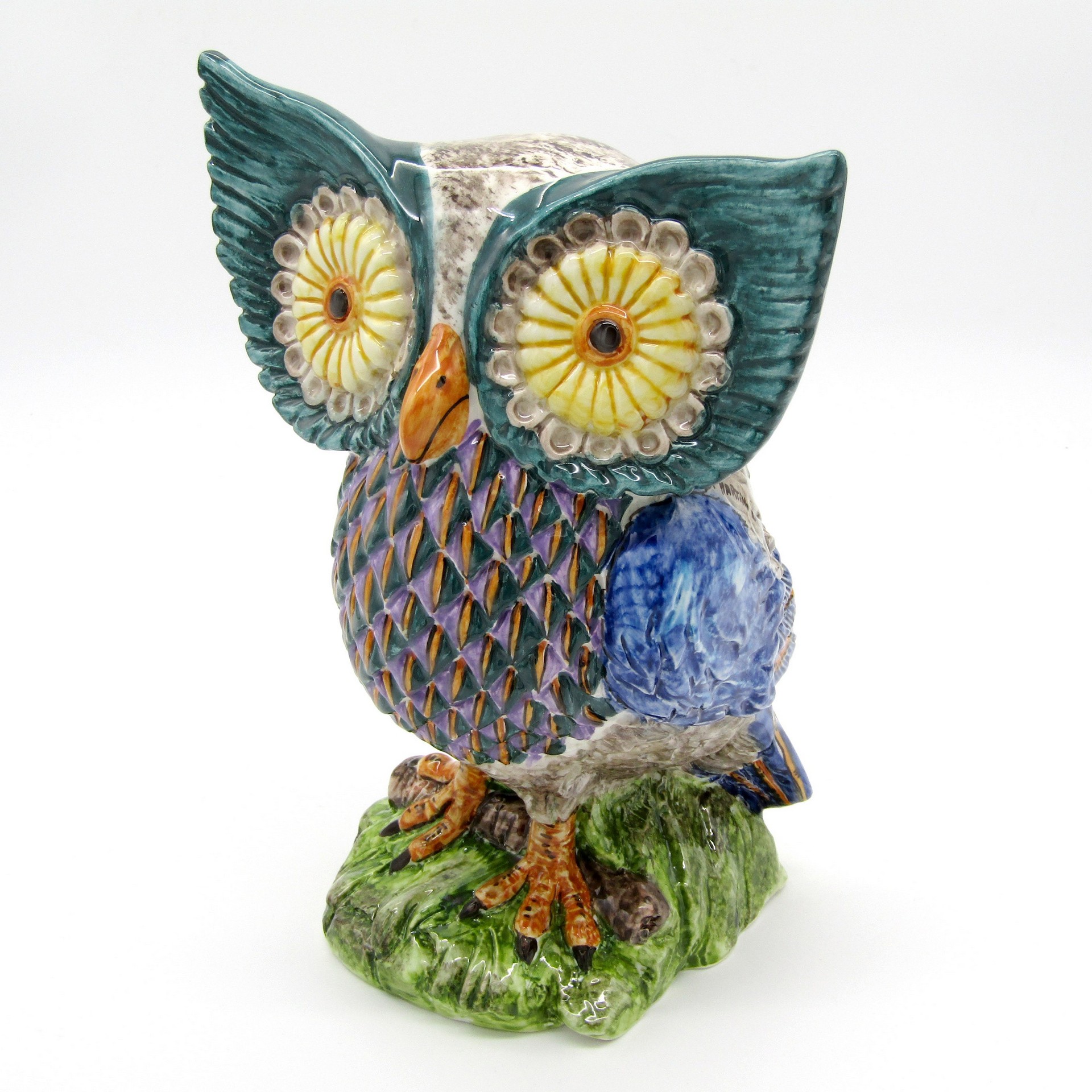 Maiolica decorata a mano Ceramiche Artistiche Di Martino - Civetta triangoli celeste h cm 25 x cm 15 x cm 17 Maiolica decorata a mano