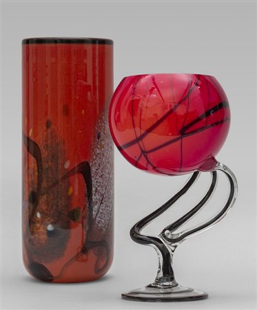 Vaso (h.cm.25) e coppa (h.cm.30) in vetro rosso