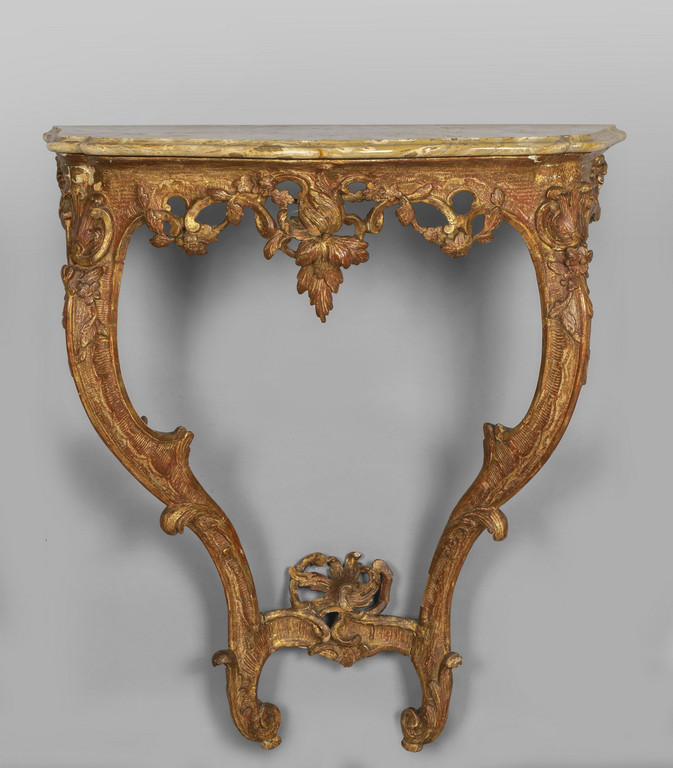 Consolina Luigi XV a goccia in legno intagliato e dorato, Italia Meridionale sec.XVIII