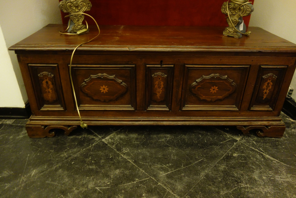 Previous Lot 0342 Next Aste Boetto - Via Mura dello Zerbino 10R, 16122 Genova ASTA DI ANTIQUARIATO Asta di Antiquariato e Arte Orientale Tuesday 6 December 2022 hours 10:00 (UTC +01:00) Cassapanca in noce, sec.XVIII Cassapanca in noce, sec.XVIII