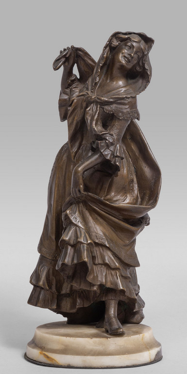 Sciantosa, bronzetto a patina chiara, base in marmo