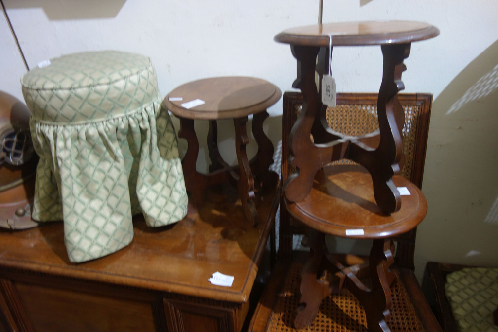 Quattro sgabelli moderni in noce di cui uno adattato a pouf