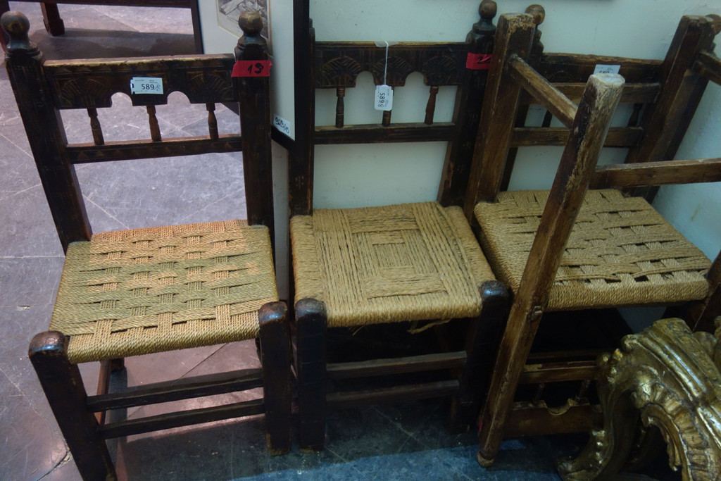 Otto sedie rustiche di forme diverse, sec.XVIII