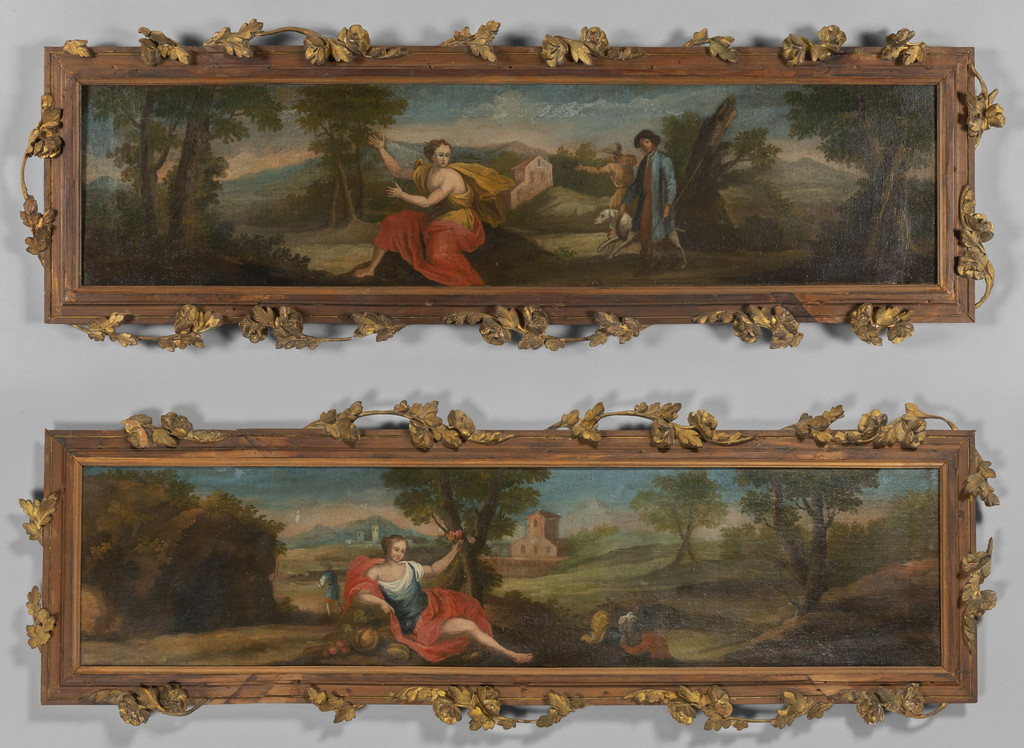 "Paesaggi agresti con figure" coppia di olii, sec.XVIII