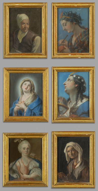 Maria Saracini Gori "Figure femminili" sei pastelli di cui tre firmati, cornici coeve in legno dorato