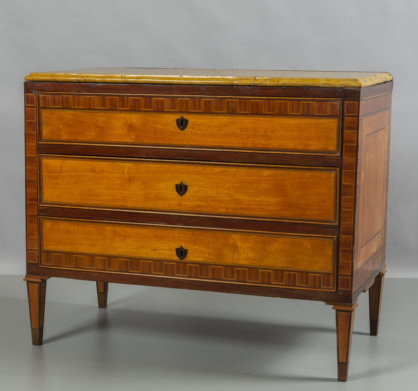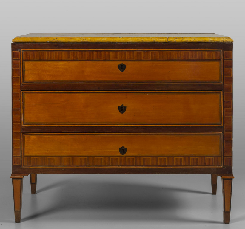 Comò Luigi XVI lastronato a tre cassetti, piano in marmo giallo, Italia Meridionale sec.XVIII