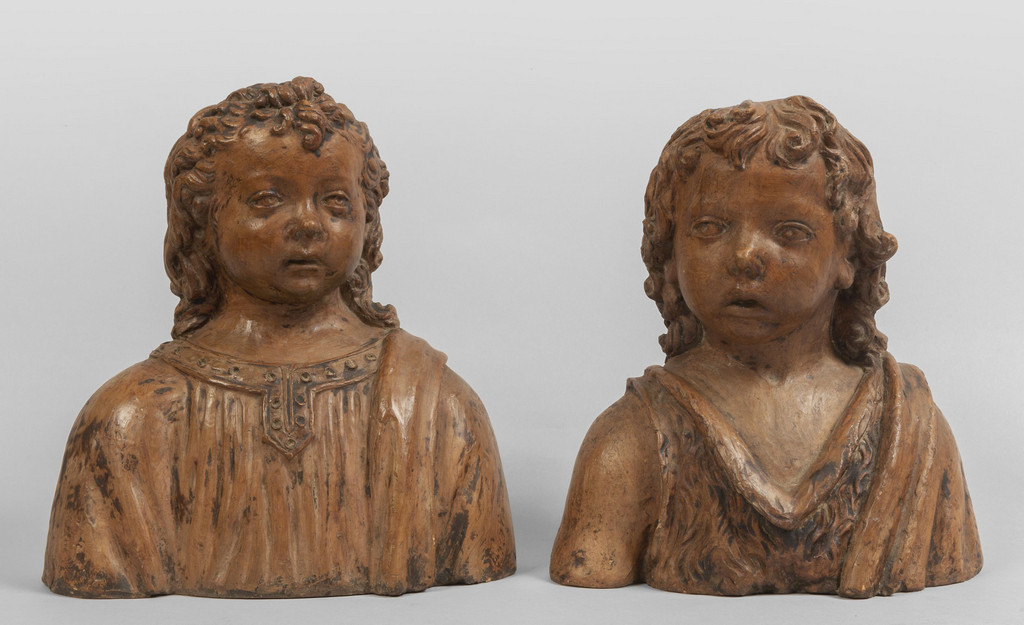 Coppia di busti in terracotta raffiguranti bambini, sec.XIX