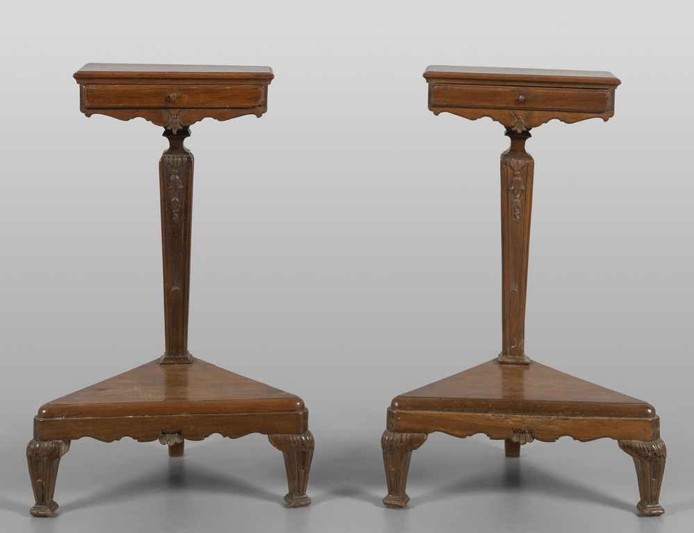 Coppia di inginocchiatoi in noce, un cassetto sotto il pianetto, sec.XIX
