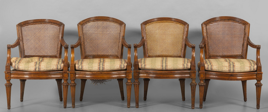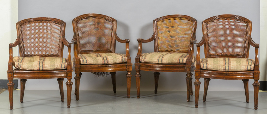 Lot 0421 | Quattro poltrone Luigi XVI in noce, sedile e