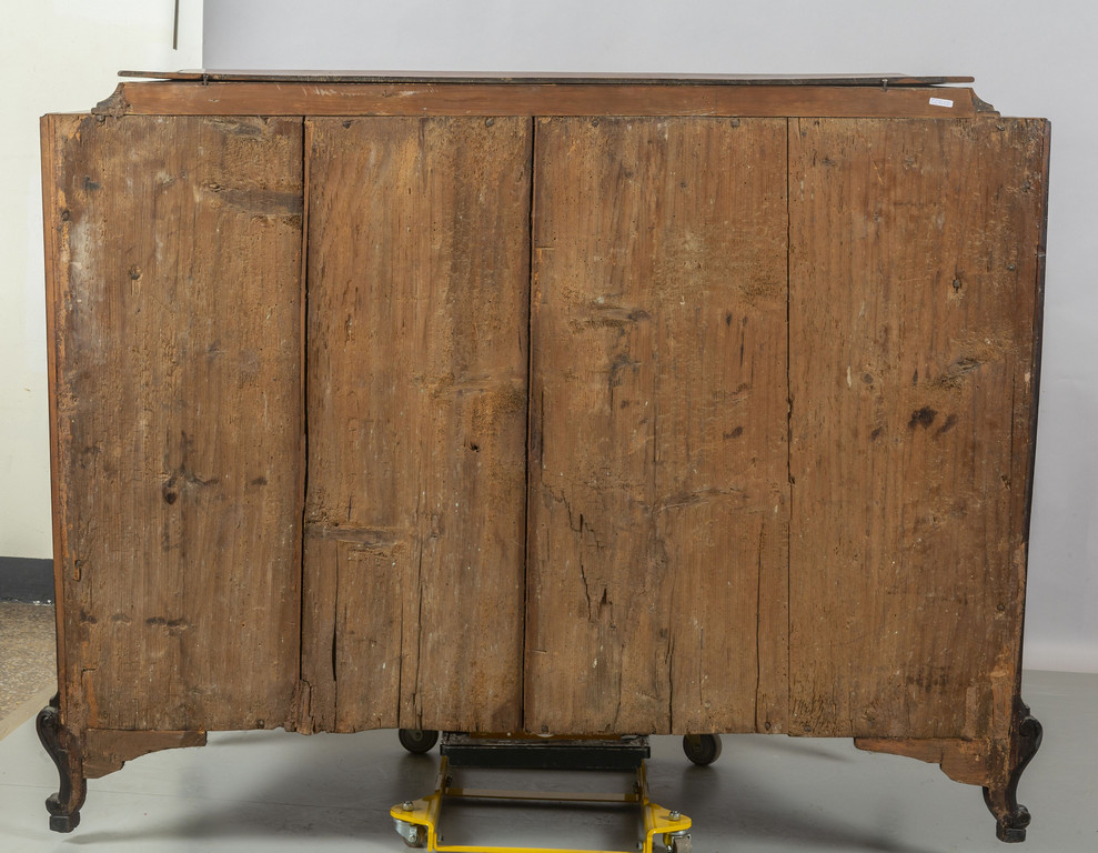 Ribalta Luigi XIV lastronata in noce e radica di
