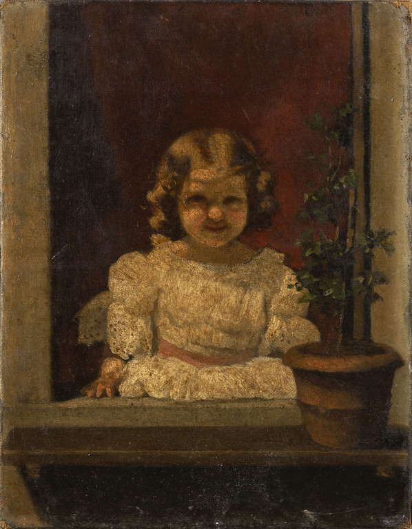 "Bambina al davanzale" olio sec.XIX (cm 22,5x30)