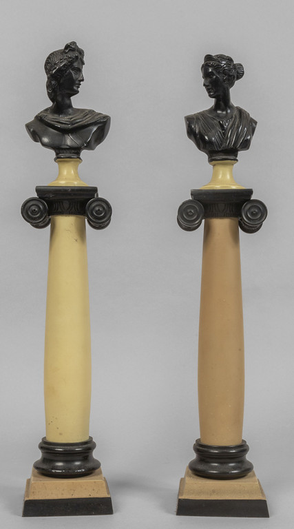 Previous Lot 0428 Next Aste Boetto - Via Mura dello Zerbino 10R, 16122 Genova ASTA DI ANTIQUARIATO Asta di Antiquariato e Arte Orientale Tuesday 6 December 2022 hours 10:00 (UTC +01:00) Coppia di colonne con busti<br>h.tot.cm.45 Coppia di colonne con bustih.tot.cm.45