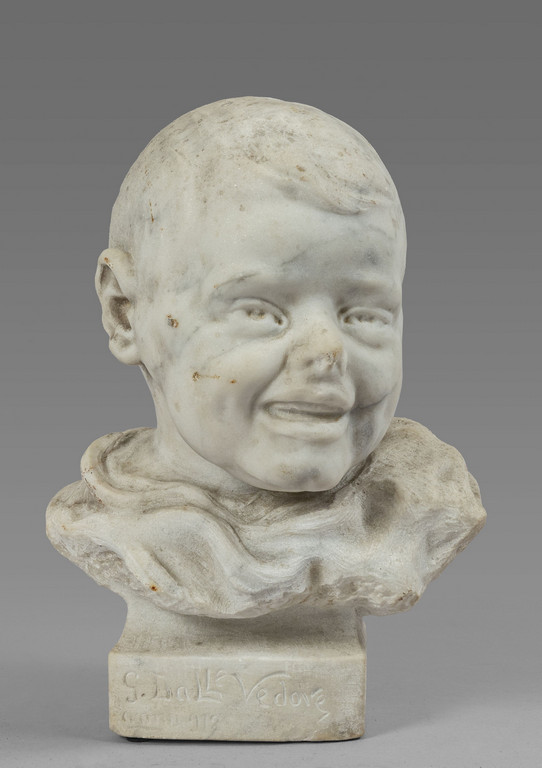 Fanciullo sorridente, scultura in marmo f.to nella base G.Dalle Vedove anno 1913