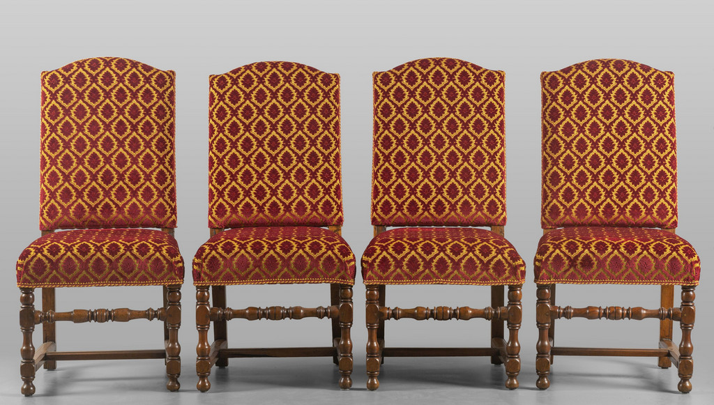 Lot 0475 | Quattro sedie a rocchetto rivestite in stoffa