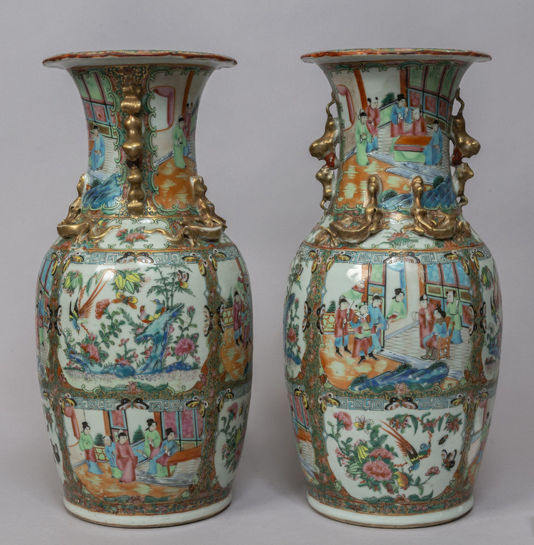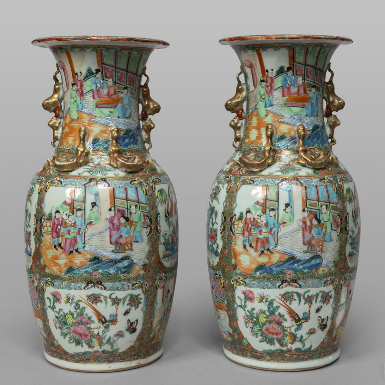 Coppia di vasi in porcellana Canton decorati in