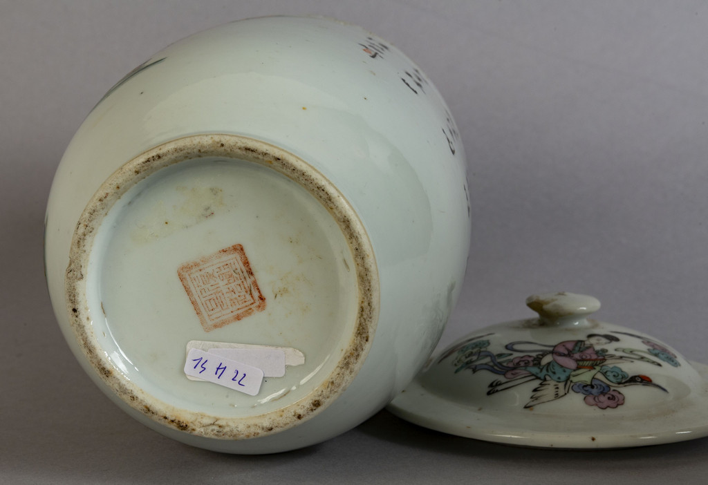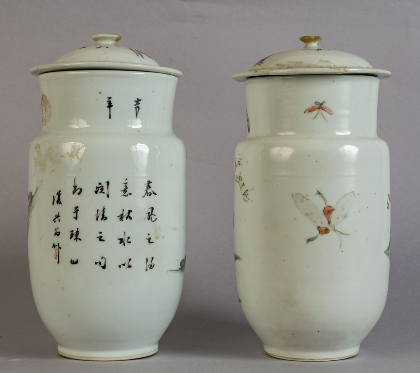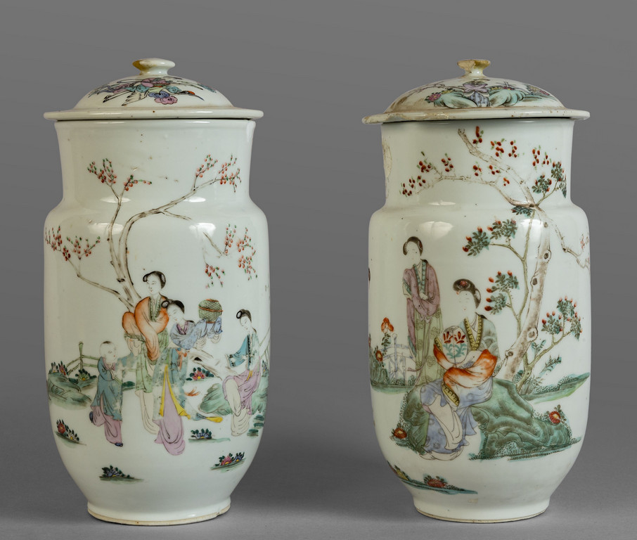 Coppia di vasi con coperchio in porcellana, famiglia Verde, Cina sec.XIX