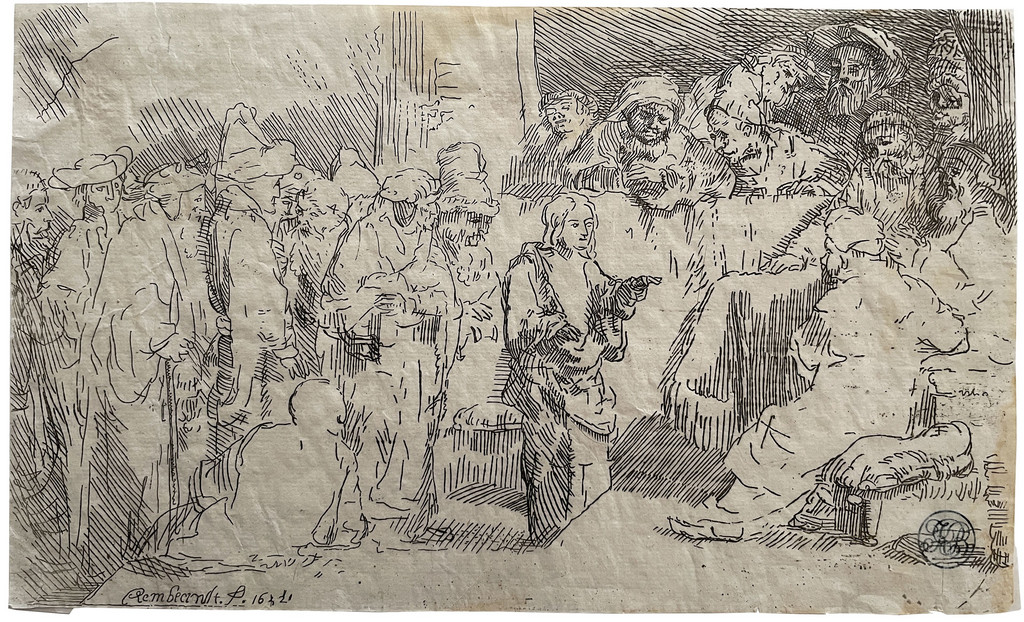 Rembrandt ha realizzato almeno tre incisioni e un disegno su questo argomento.