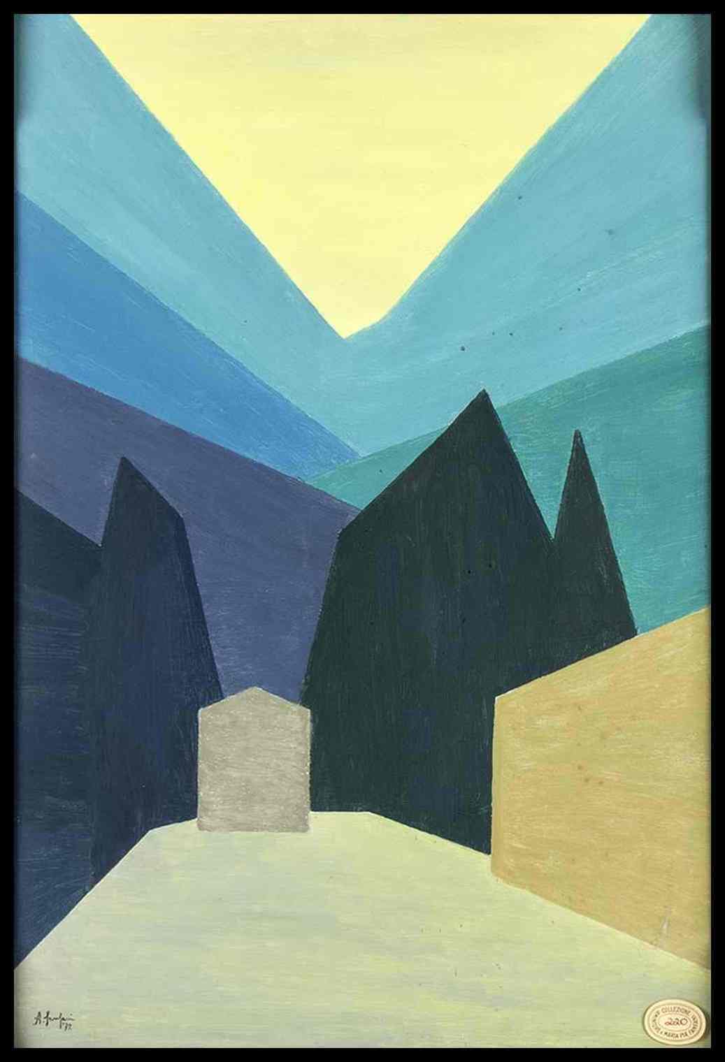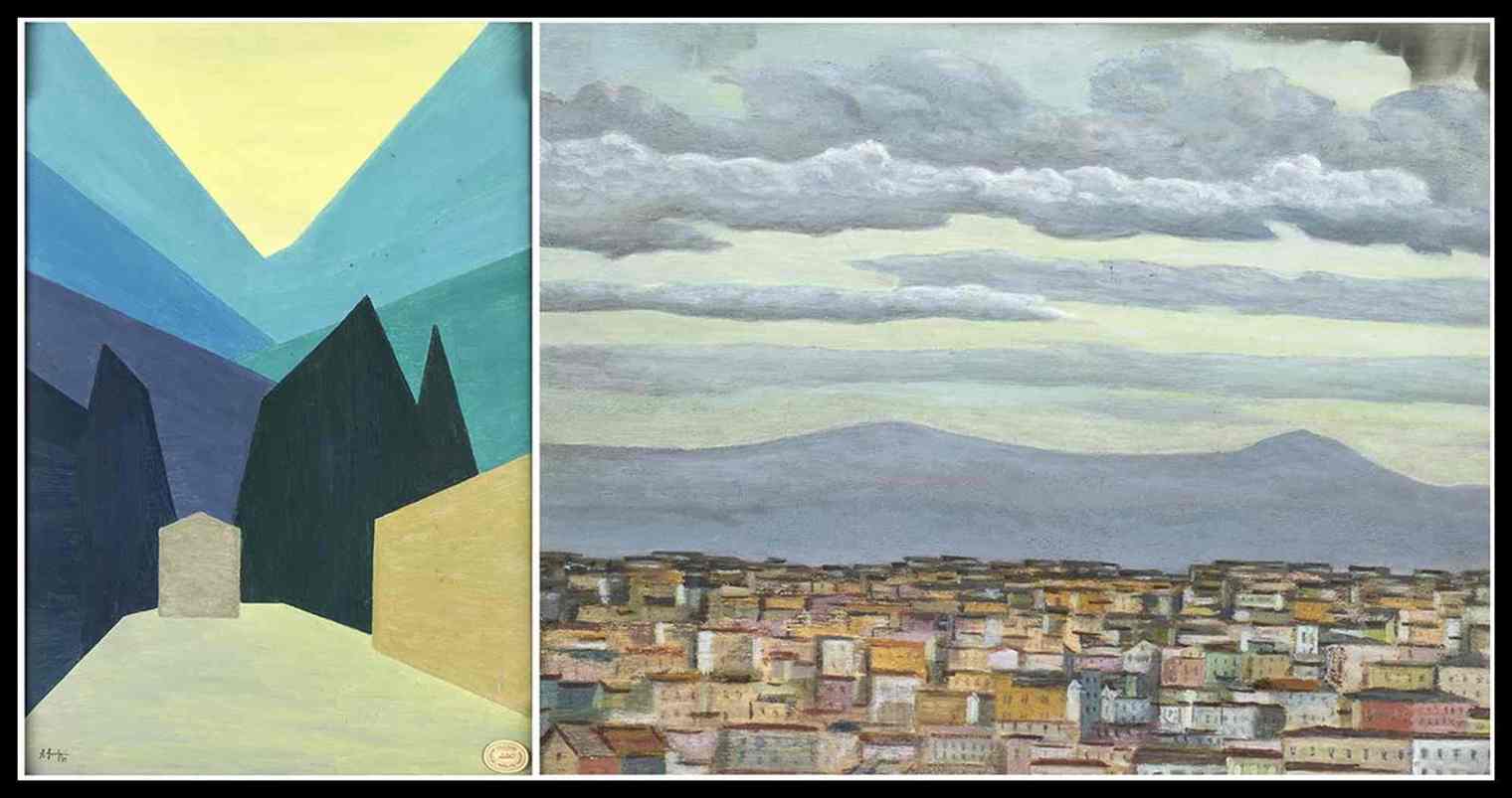 firmate Amintore Fanfani "Camaldoli" olio su tavola 1972, "Sotto il Vesuvio" olio su tavoletta 1966 non firmato. In cornice