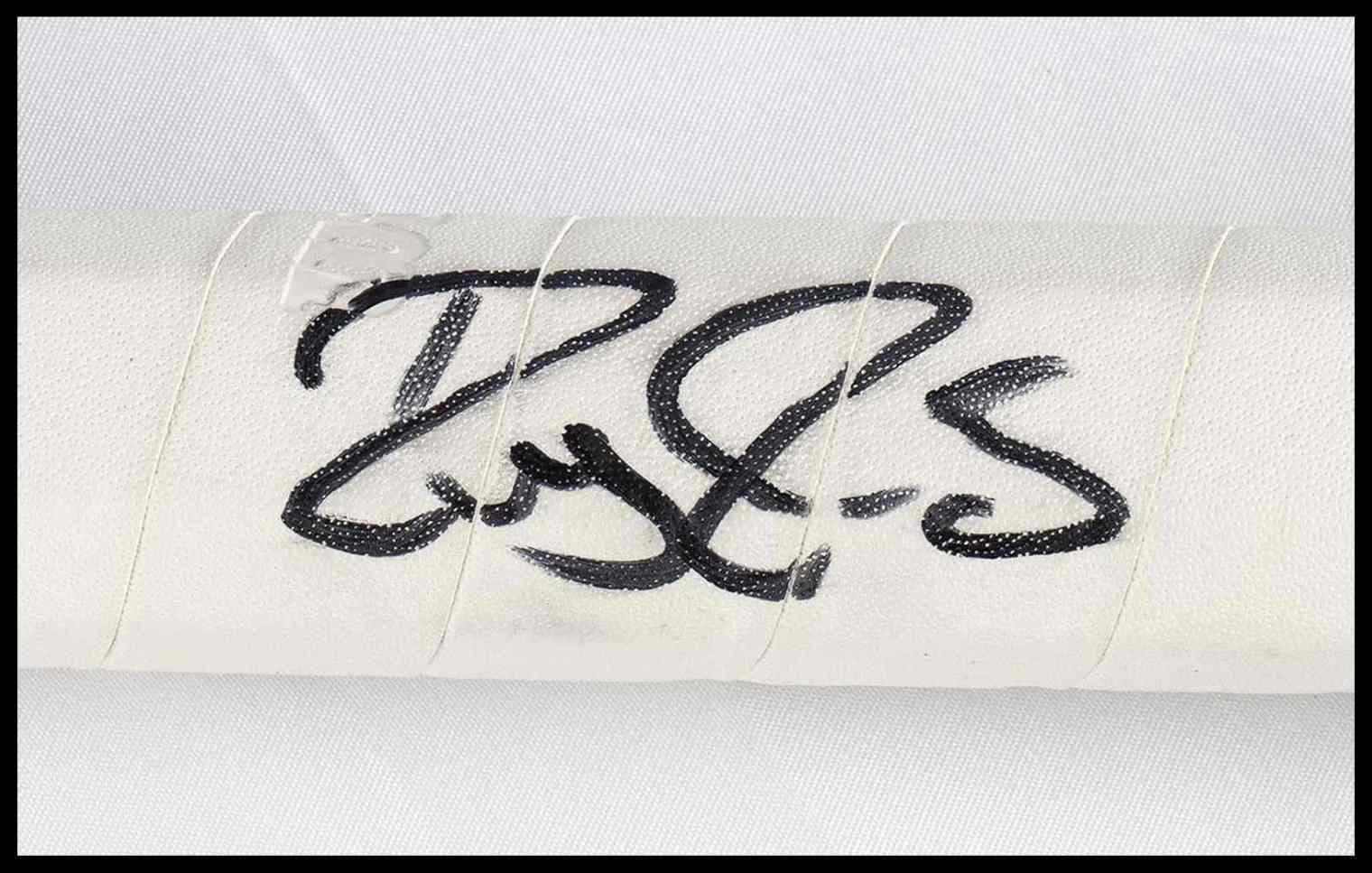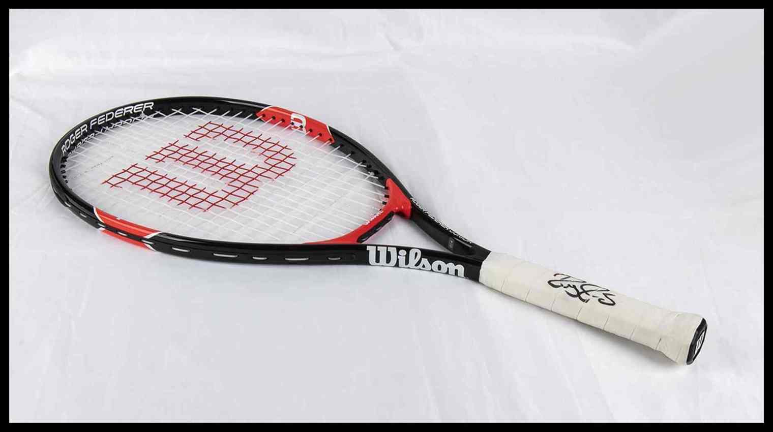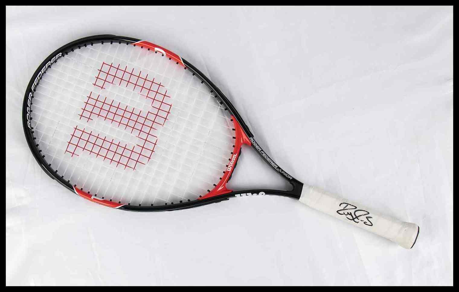 Racchetta da tennis della Wilson, modello Roger Federer Junior, con autografo originale scritto di pugno da Roger Federer sull'impugnatura. Autografo a pennarello nero. E' il terzo tennista più vincente nelle prove del Grande Slam, con 8 Wimbledon, 6 Australian Open, 5 US Open e 1 Roland Garros. È al terzo posto anche nella classifica delle vittorie dei Big Titles (54), ovvero i tornei di tennis più importanti e prestigiosi al mondo.
