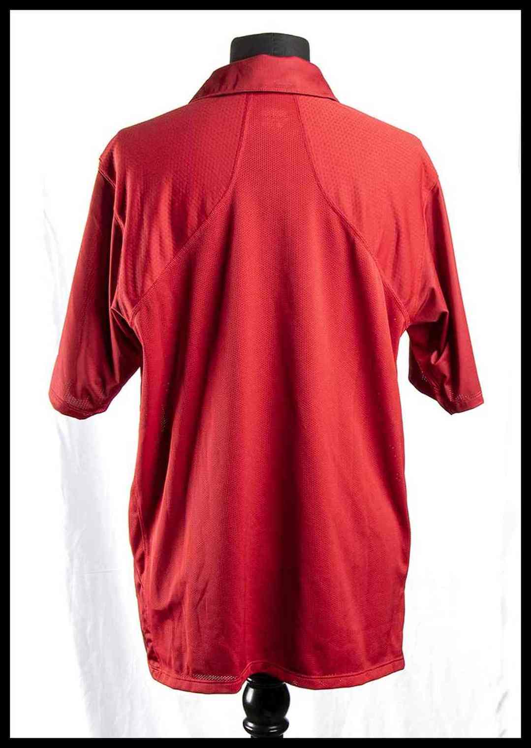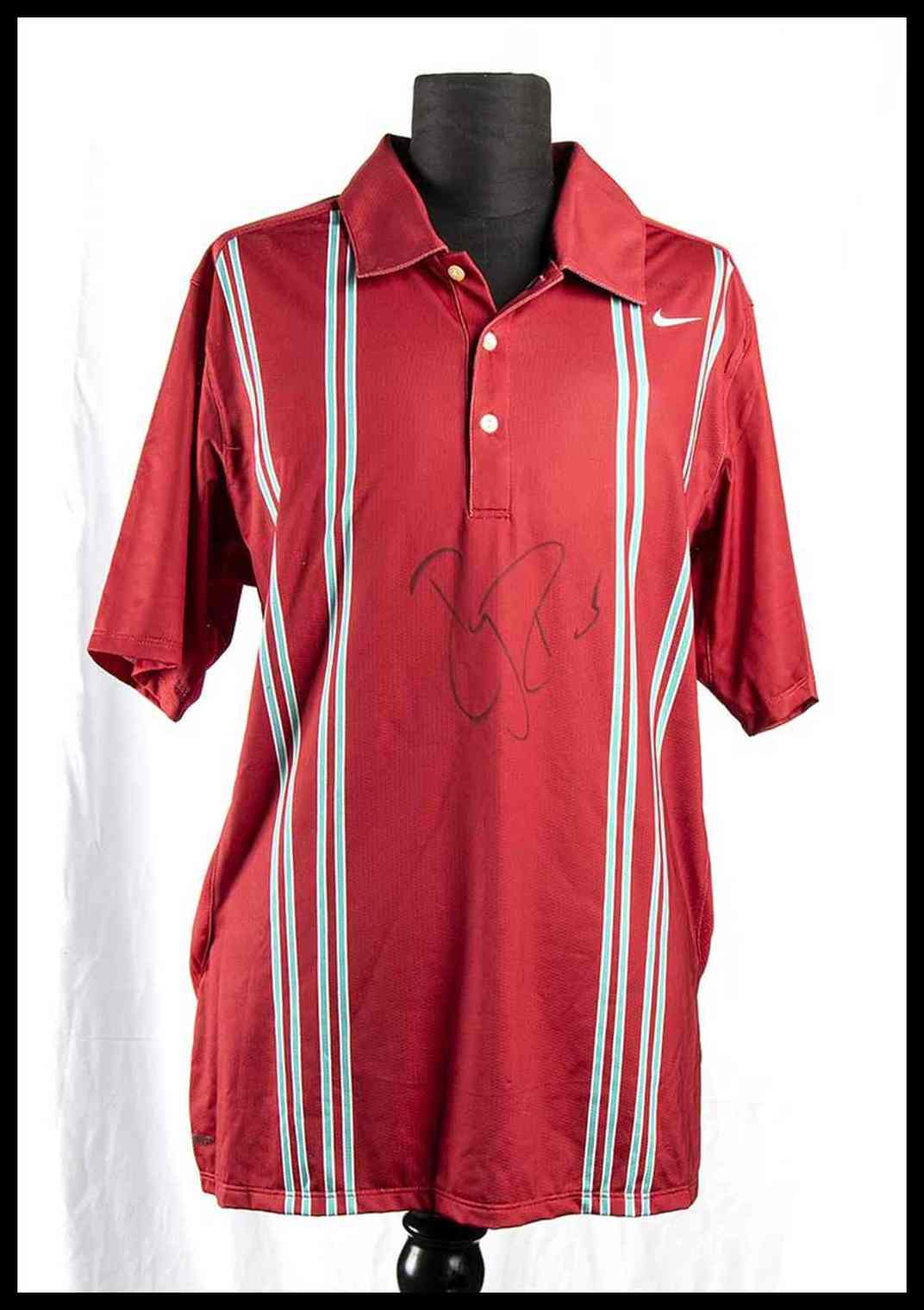 Maglia della Nike indossata da Rogerer Federer in occasione degli INTERNAZIONALI BNL D'ITALIA, al Foro Italico di Roma, il 9 Maggio 2007 durante il primo turno. Taglia M, marcata Nike Fit. Autografata di pugno da Federer con pennarello indelebile nero, La maglia è stata consegnata dalla manager di Federer, la signora Mirka Vavrinec, e proviene da una precedente vendita di beneficenza gestita dalla fondazione "Tennis For Africa". In materiale sintetico Nike Fit Dry, colore rosso bordeaux, con quattro gruppi di righe celesti e bianche e tre bottoni di chiusura al collo. In perfette condizioni. Un importante cimelio appartenuto ad uno dei più grandi campioni che il tennis abbia mai avuto, e che nel tempo sarà ancora più prezioso e di valore, considerato che Federer ha recentemente dato l'addio ai campi di gioco in un ultimo incontro alla Lever Cup, giocato in doppio con Rafael Nadal lo scorso Settembre 2022.