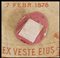 Cartoncino EX VESTE EIUS con frammento di cotone della veste bianca di Papa PIO IX , datato 16 GIUGNO 1878 , con firma autografa ad inchiostro nero del Cancelliere Ecclesiastico dell'epoca. Sul cartoncino in alto piccola foto di Sua Santità in preghiera, entro cornice pontificia.