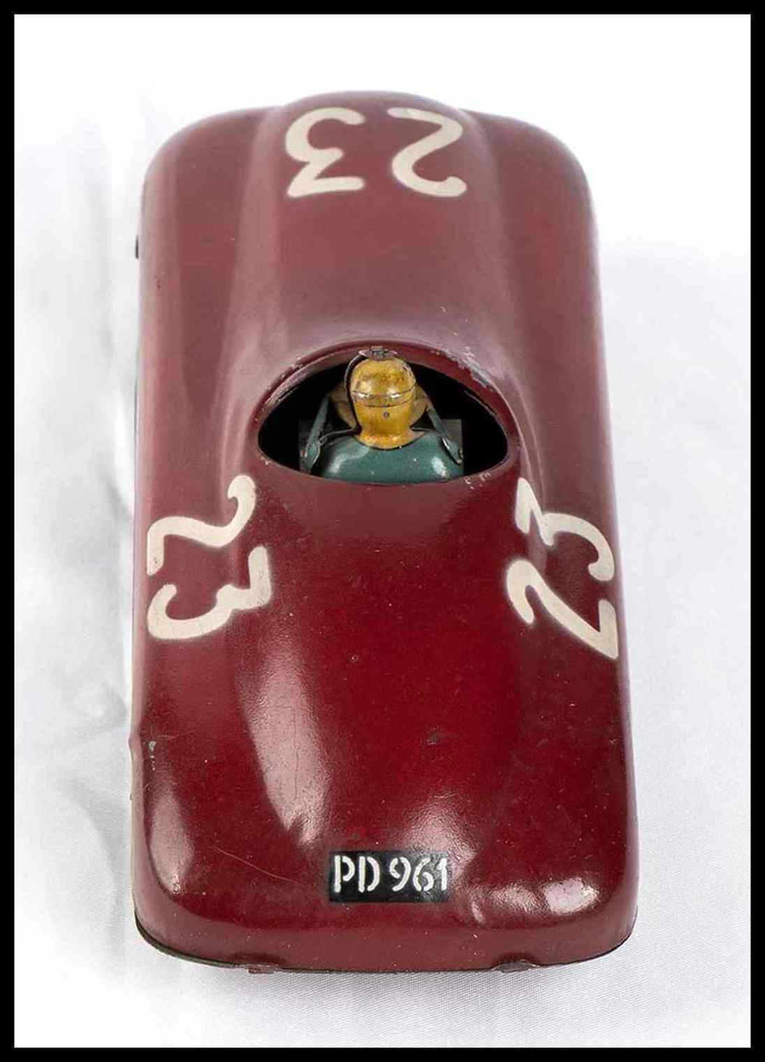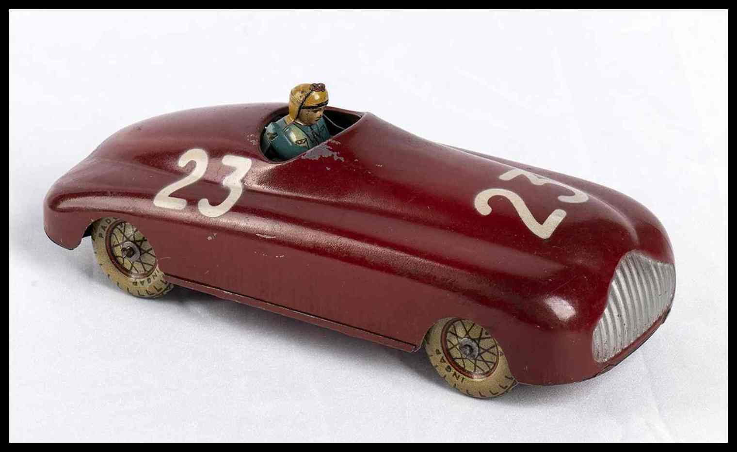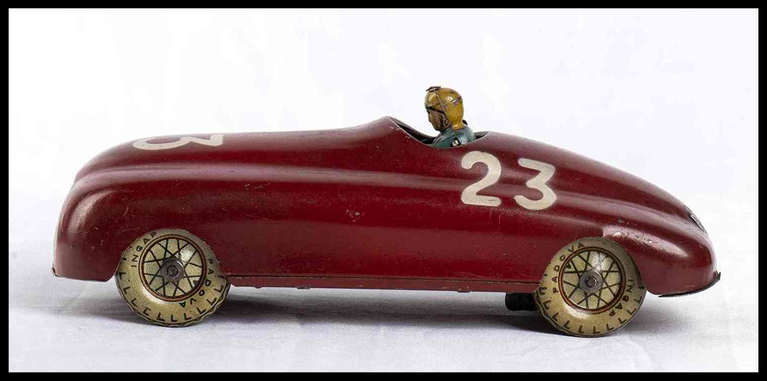 Automodello giocattolo prodotto dalla INGAP articolo PD-961 riproducente la FIAT 1100 S BARCHETTA Ala d'Oro, da corsa, con carrozzeria Stanguellini. Realizzata in latta litografata, numero di gara 23, con pilota originale in latta, ruote litografate marcate INGAP a simulare il battistrada degli pneumatici. Provvista di movimento meccanico con carica a molla, chiave originale, funzionante