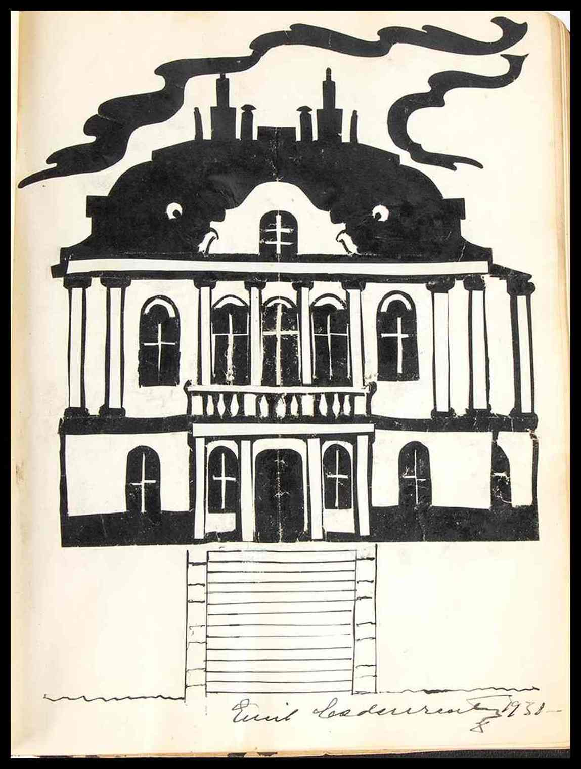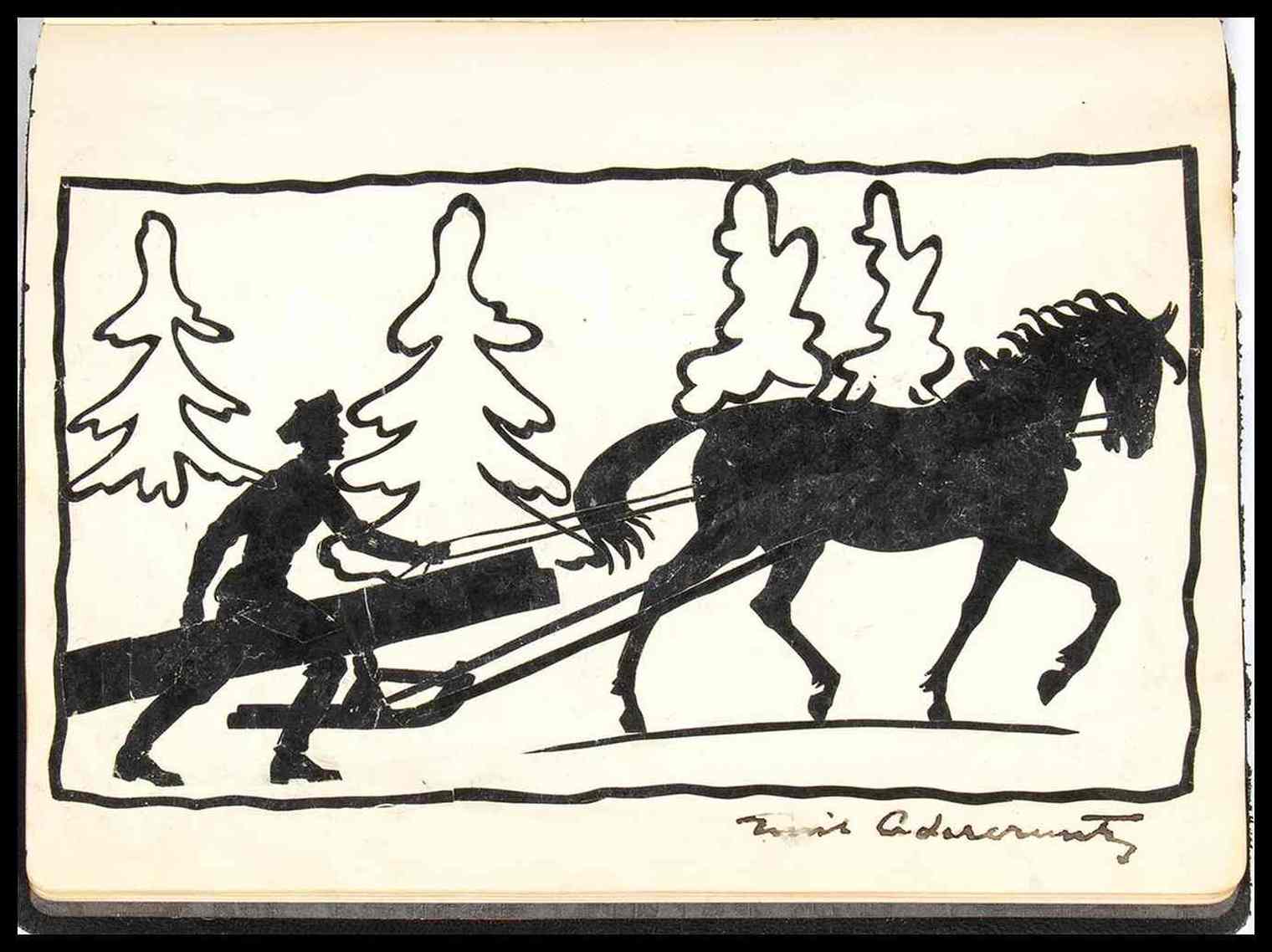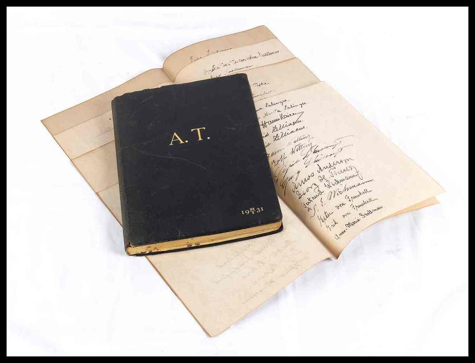 Diario di amicizia dedicato al Ministro italiano Attilio Tamaro, Presidente onorario dell'Istituto Italo Finlandese di Helsingfors (Helsinki) capitale della Finlandia. Il diario è una vera raccolta di opere d'arte originali, realizzate dal maestro Emil Cedercreutz : ci sono 84 silhouettes di personaggi noti dell'epoca, 11 silhouettes di paesaggi ed importanti città italiane come Roma, Venezia, Napoli. Ogni pagina misura cm. 19x24. Copertina in similpelle, con impresse le iniziali A.T. in similoro e la data 23 Aprile 1931. Prima pagina con dedica "Al suo illustre Presidente onorario il ministro d'Italia Attilio Tamaro con profonda riconoscenza. L'Istituto Italo Finlandese a Helsingfors" ed autografo di Emile Cedercreutz in qualità di presidente del suddetto istituto. Le silhouettes sono originali, in carta leggera nera, applicate alle pagine del diario. I ritratti dei personaggi sono accompagnati in calce dalla firma autografa del personaggio ritratto; le raffigurazioni di paesaggi e città sono ancora silhouettes originali e firmate autografe da Emile Cedercrutz stesso. Nel diario sono raccolte circa 193 firme autografe di diplomatici, rappresentanti dell'istituto, degli impiegati, ed amici finlandesi. Cedercreutz riformò la scultura finlandese introducendo i temi del lavoro e della vita quotidiana., i cavalli erano il suo tema più amato. Fu uno dei primi rappresentanti dello stile scultoreo impressionista e realistico in Finlandia.. Nel 1914 Cedercreutz iniziò a lavorare nel suo nuovo atelier sul fiume Kokemäenjoki nel comune di Harjavalta, raccogliendo anche reperti storici dalla campagna della provincia di Satakunta, e nel 1916 fondò un museo ad Harjavalta, oggi noto come Museo Emil Cedercreutz,dove sono esposte collezioni di opere di Cedercreutz, storia culturale, e nel quale si tengono mostre d'arte.