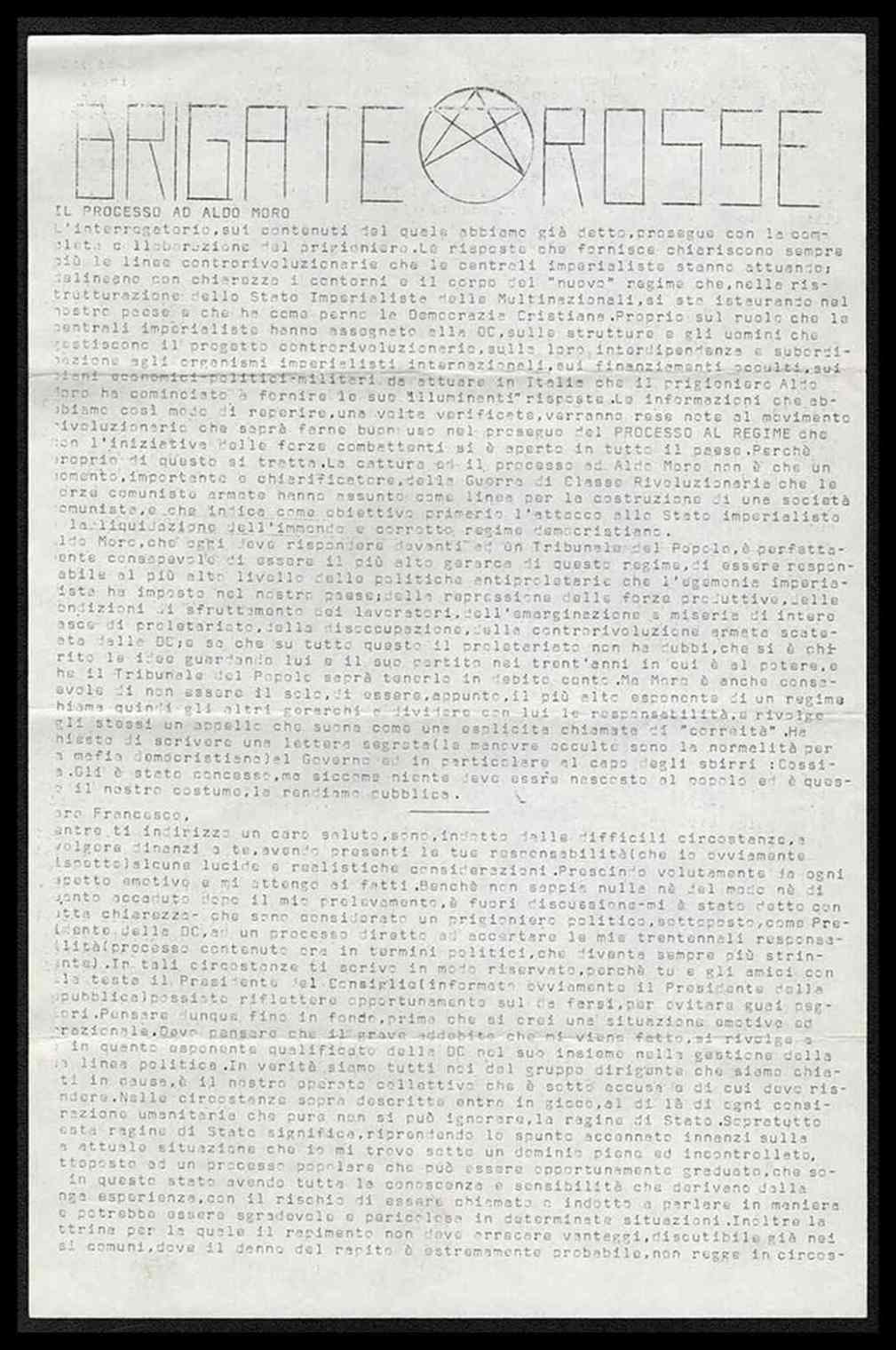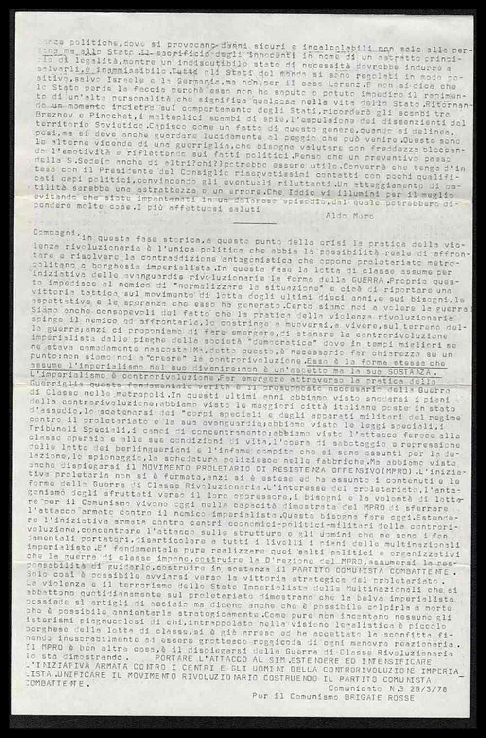 Brigate Rosse Volantino comunicato n.3 "Aldo Moro"