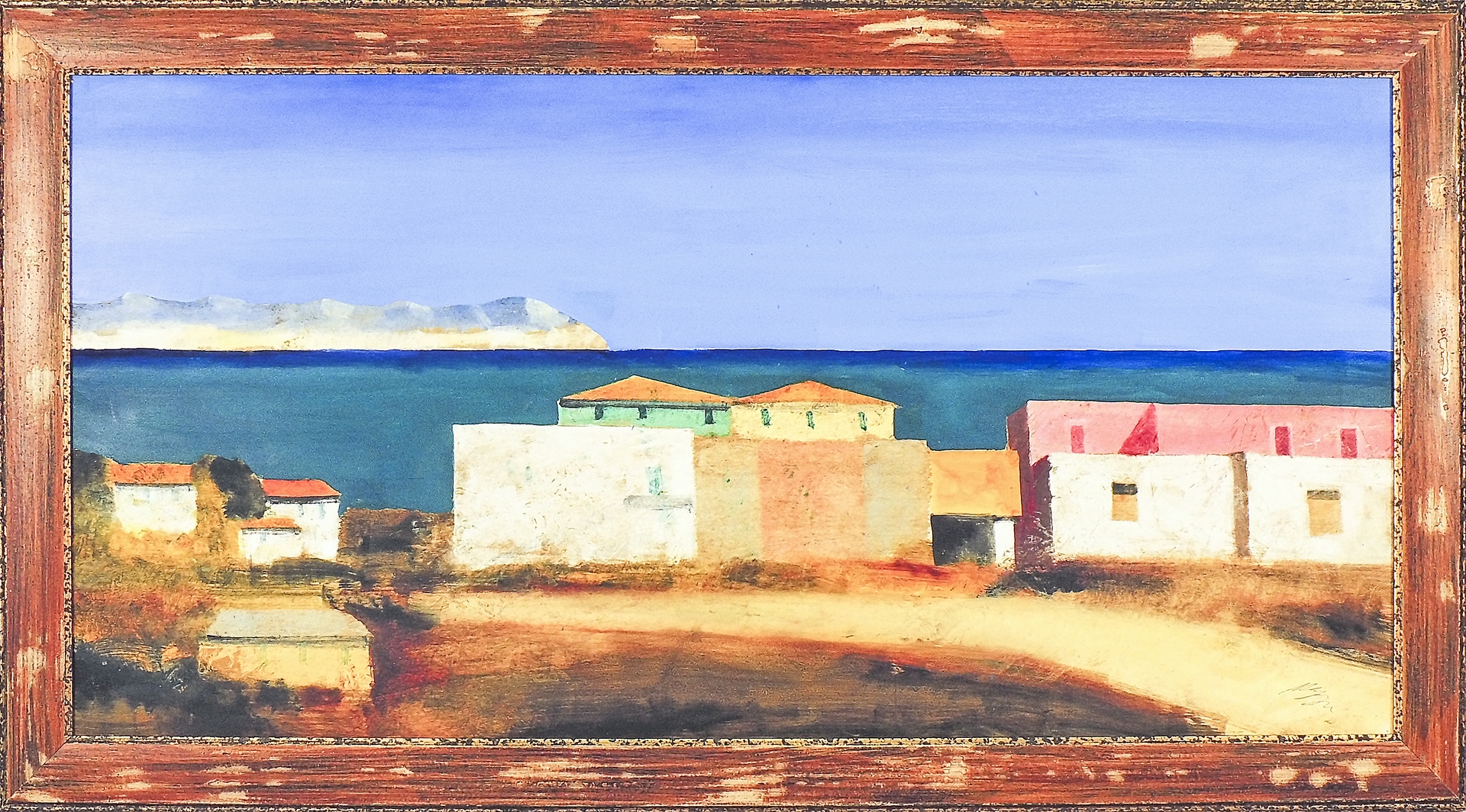 SALVATORE MAGAZZINI Paesaggio olio su tavoletta, firmato, in cornice cm 60x120 Corredato dell'autentica dell'autore su fotografia 650/700,00