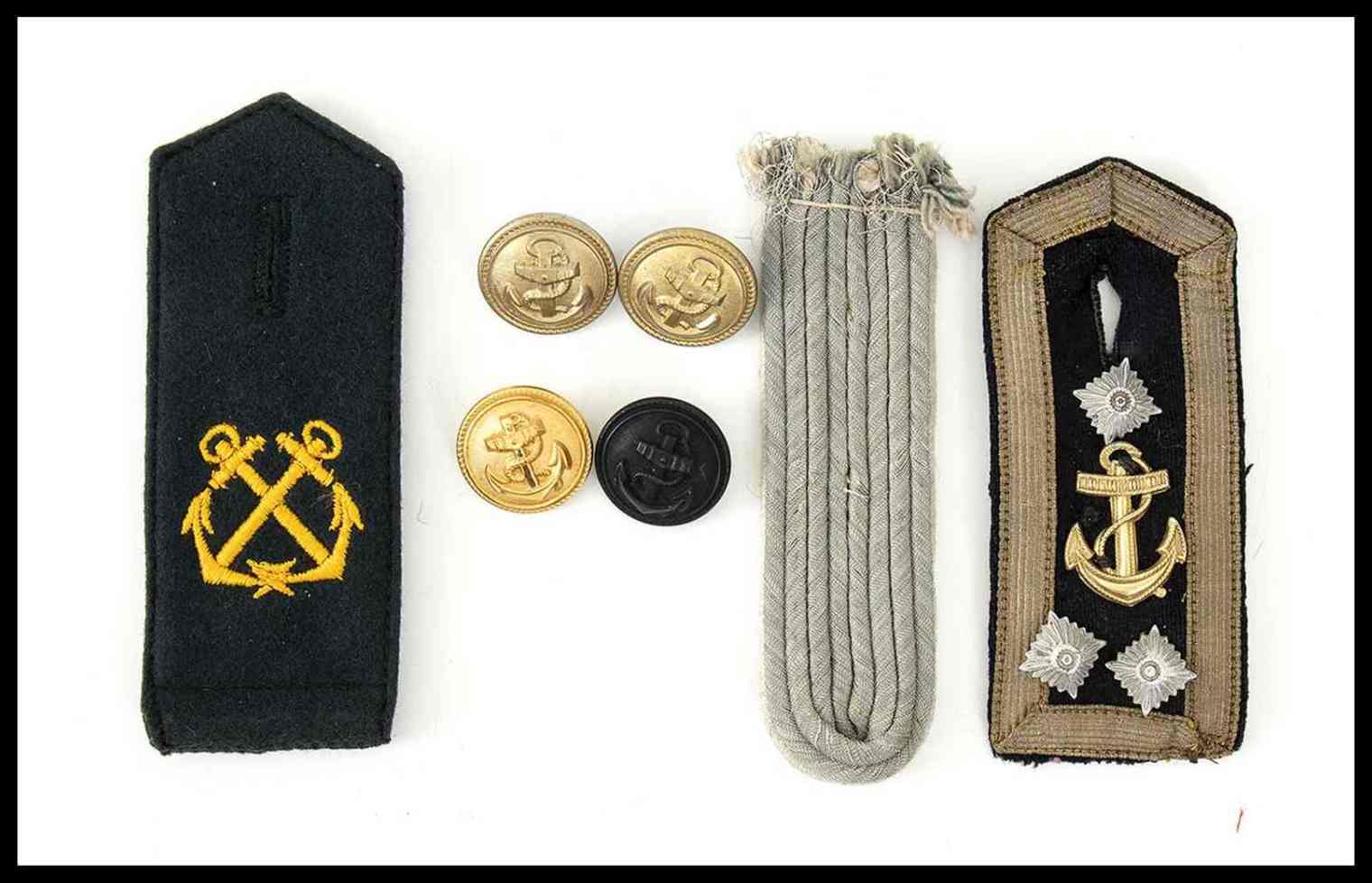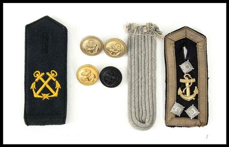 KM, spallina da Stabsoberfekdwebel, una da marinaio in panno verde scuro per artiglieria da costa ed una WH da sottotenente di fanteria, completano il lotto quattro bottoni della KM