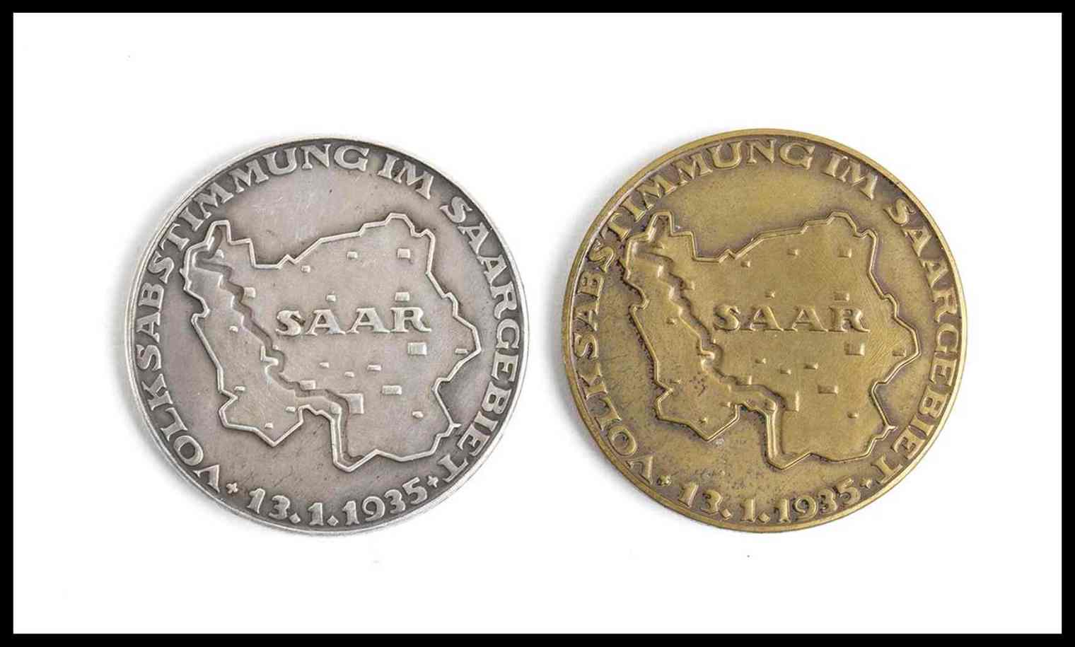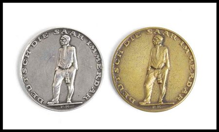 GERMANIA, III REICH<br>Lotto di due medaglie commemorative dell’annessione della SAAR