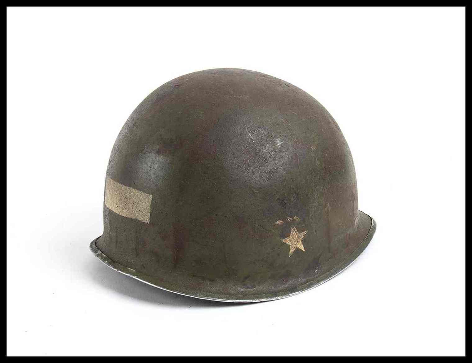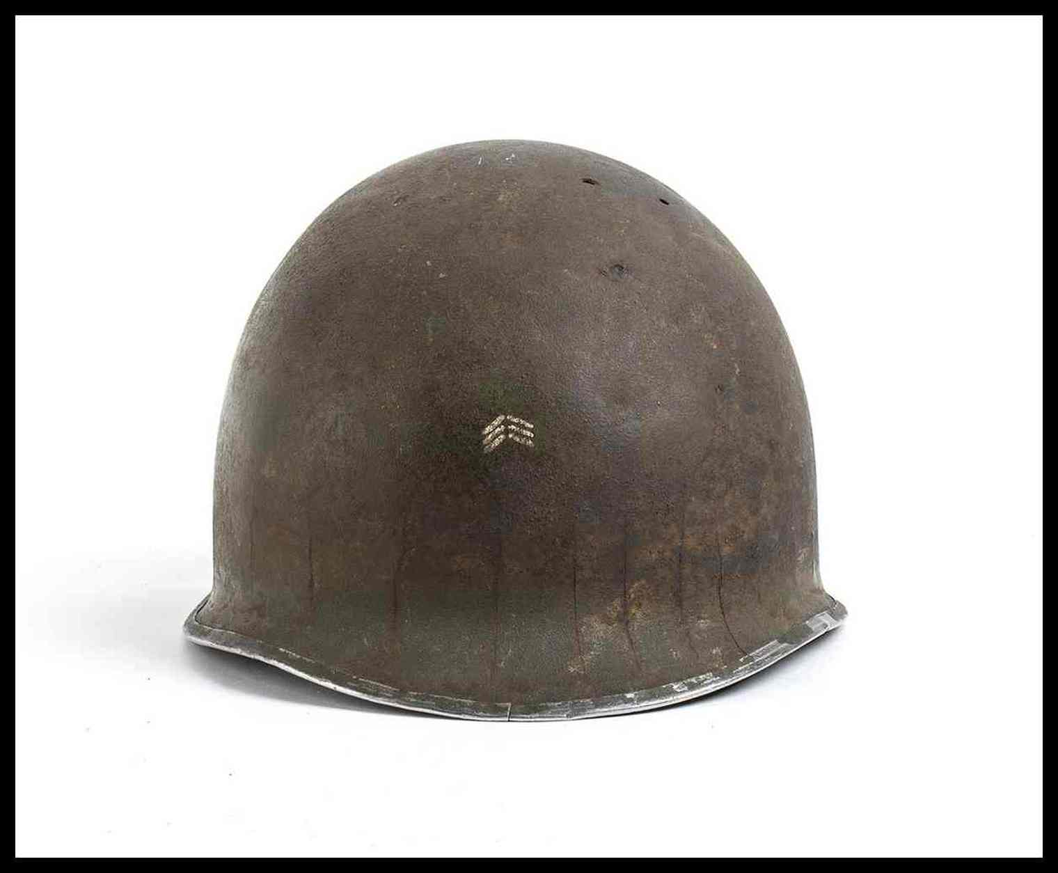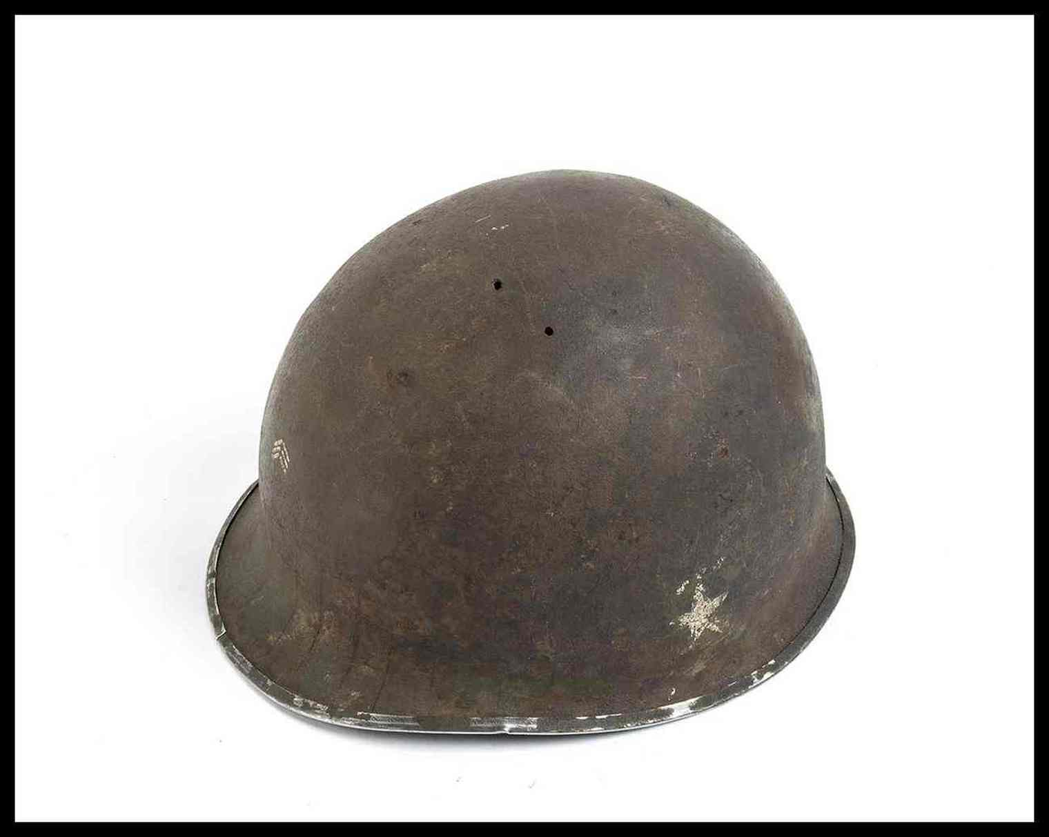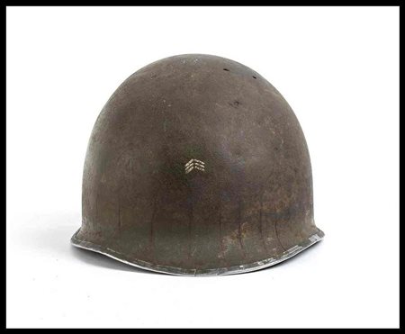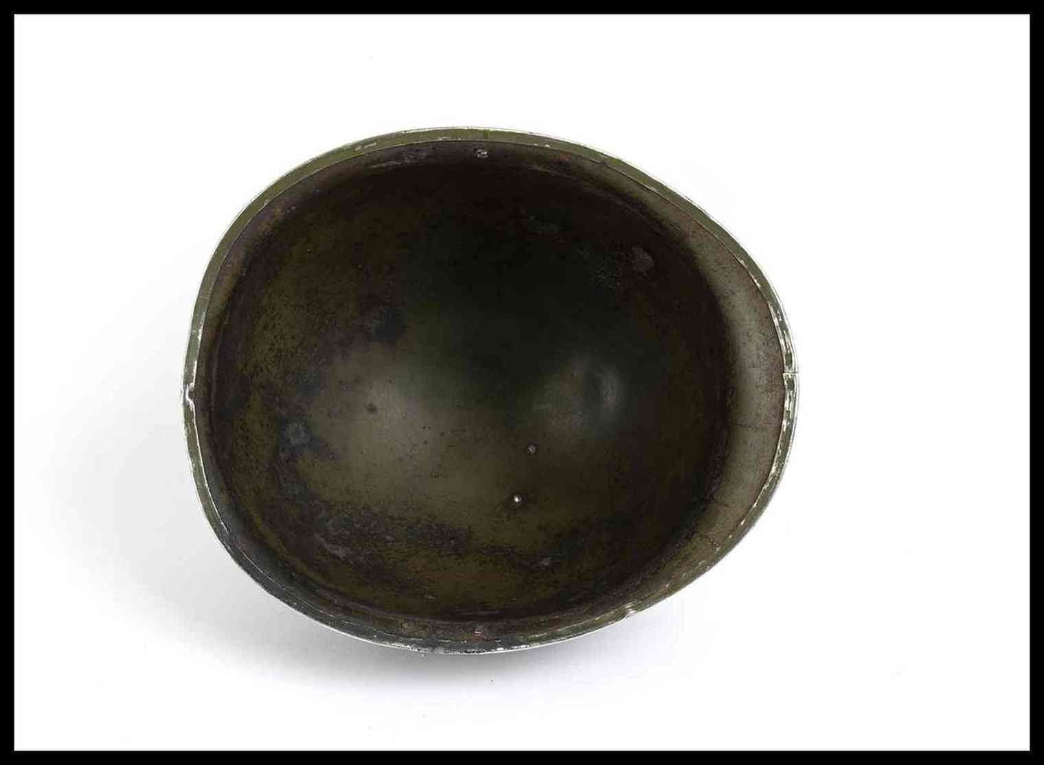 M1 con saldatura frontale, resti di fregi, parzialmente tinto in verde caki, senza ganci