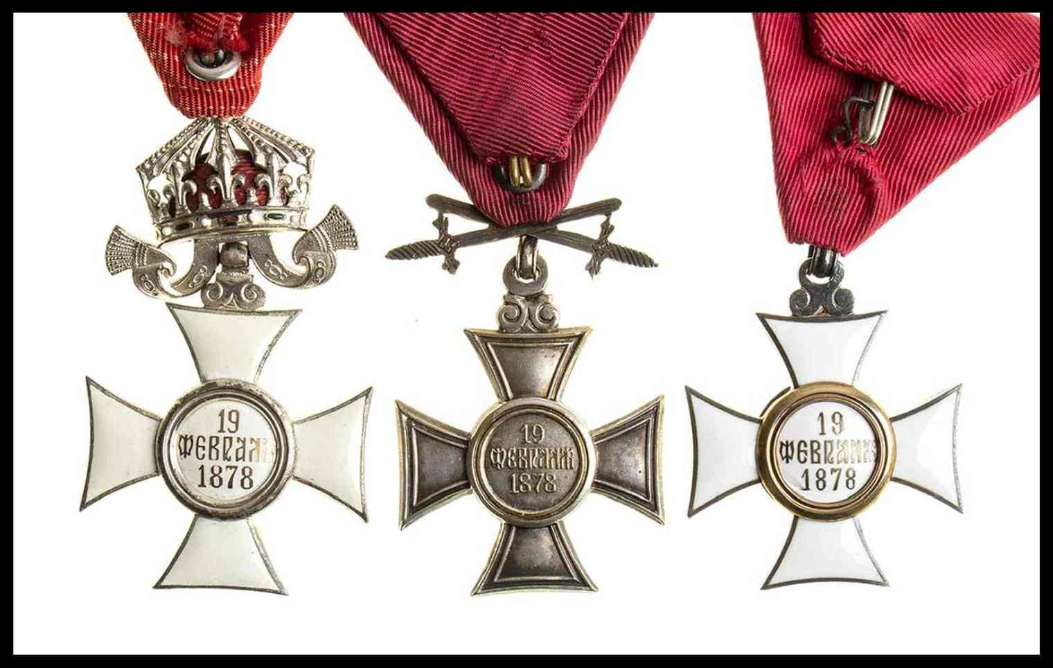 BULGARIA, REGNO<br>Lotto di 3 Croci dell’Ordine di S. Alessandro, IV V e VI Classe