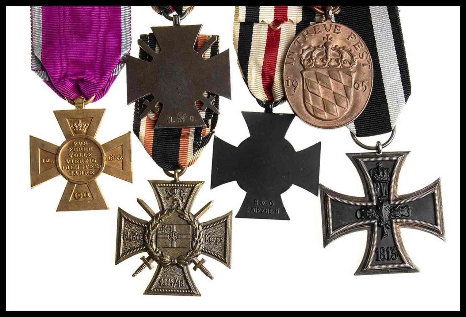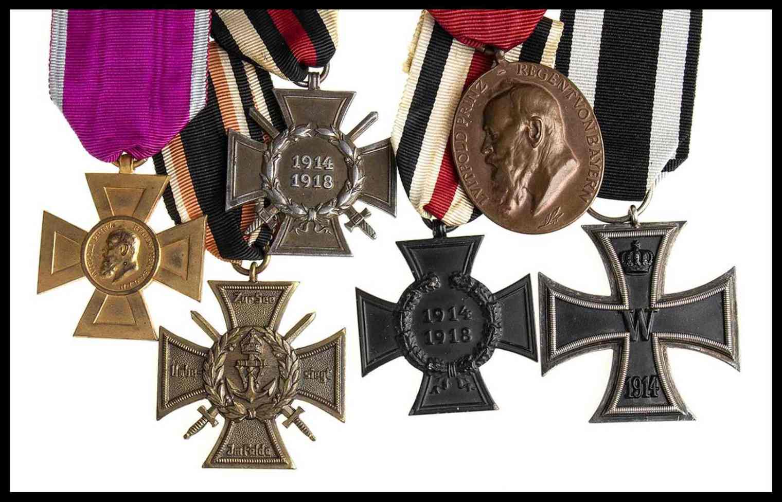 due croci commemorative la grande guerra, una croce di ferro di ii classe, una croce commemorativa la grande guerra della imperial marina, una bavarese di anzianita’ ed una commemorativa bavarese