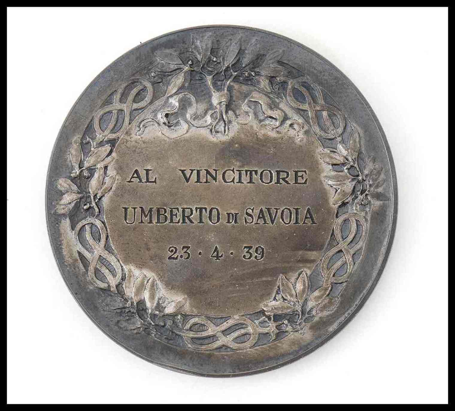 Medaglia premio sportivo concessa da Umberto II , all’epoca Principe di Piemonte, kin astuccio con cifra