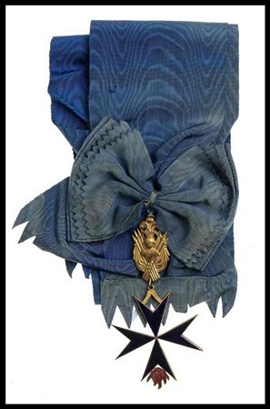 bellissimo pendente di gran croce dell'ordine militare di santa brigida di svezia con bella fascia azzurra di seta marezzata