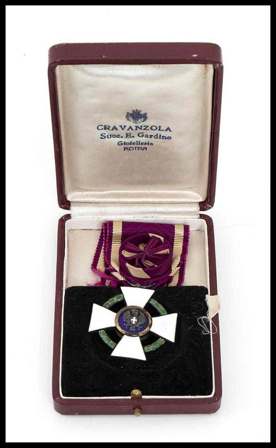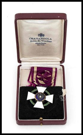 Bella insegna di cavaliere ufficiale in argento dorato e smalti, nastro originale, conservata in astuccio