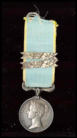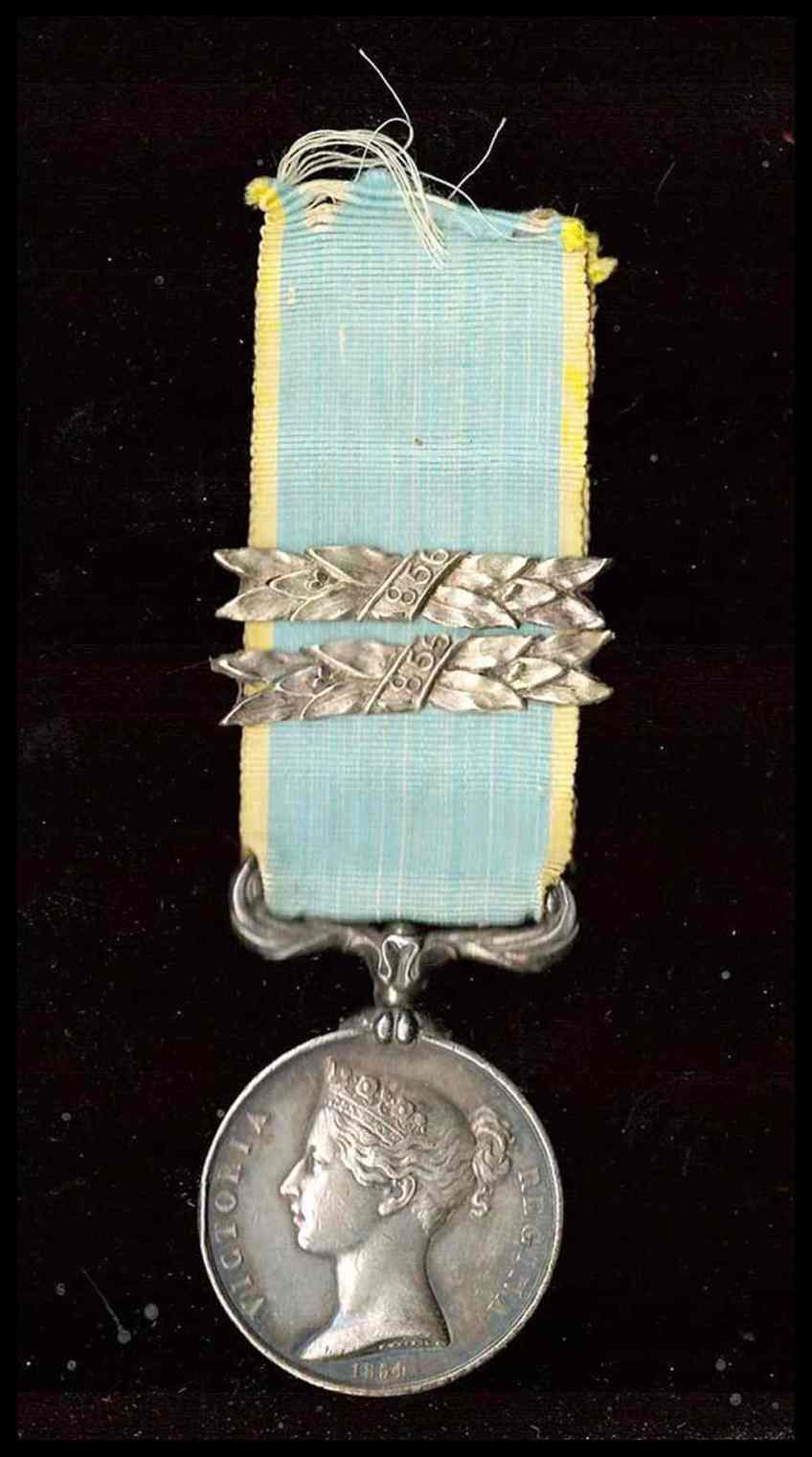 in argento, con effige della regina Vittoria, senza iscrizione al bordo, con due barrette piemontesi 1855-56, ottimo stato