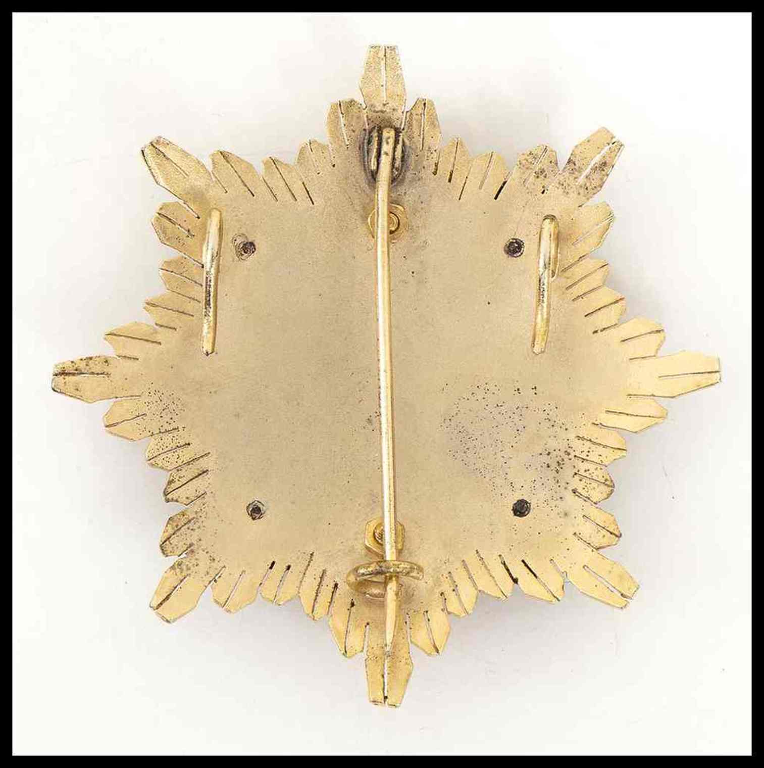 argento dorato, 66 mm, placca di prima classe in argento dorato con applicata centralmente croce latina caricata di ancota, al verso spillone centrale accostato da due ganci di fissaggio