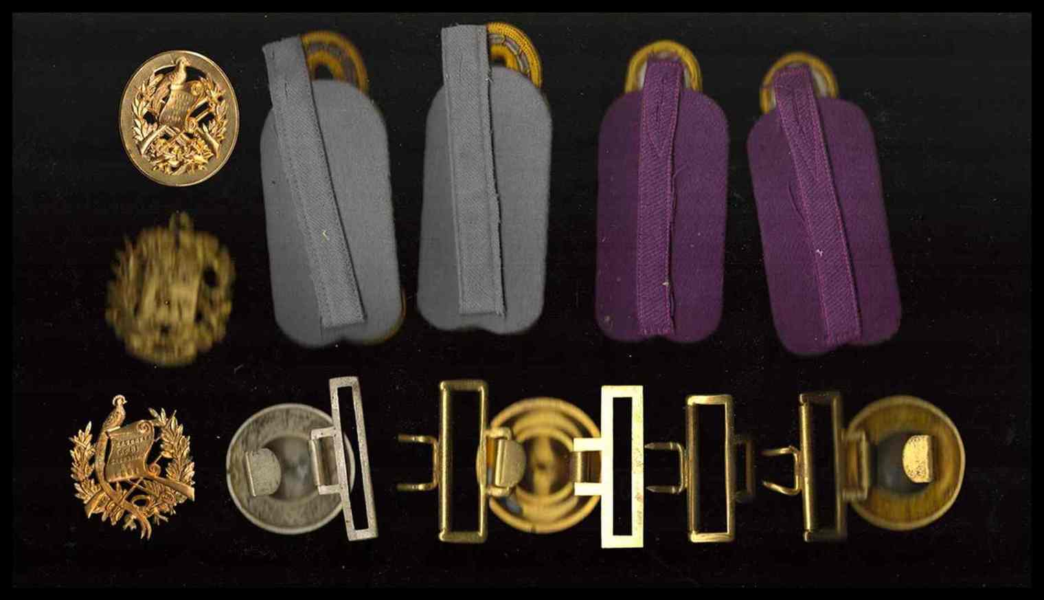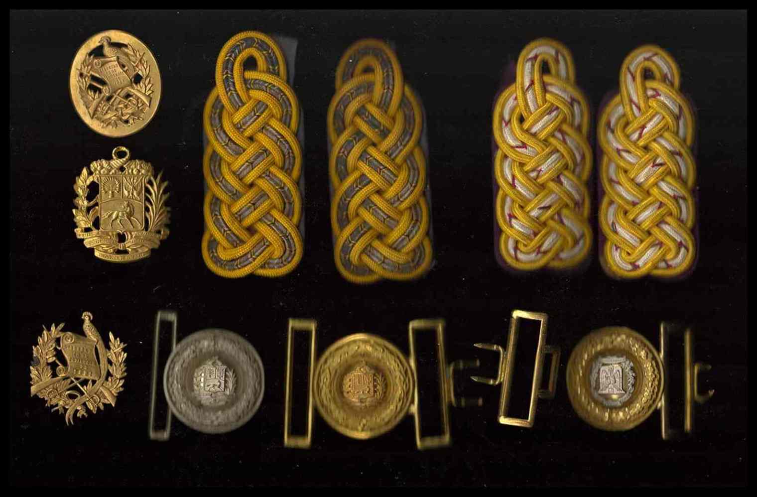 SUD AMERICA (VENEZUELA ED ALTRE)<br>Lotto di 3 coppie di controspalline, 3 fibbie e 3 fregi