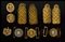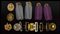 Lotto di 3 coppie di controspalline, 3 fibbie e 3 fregi
